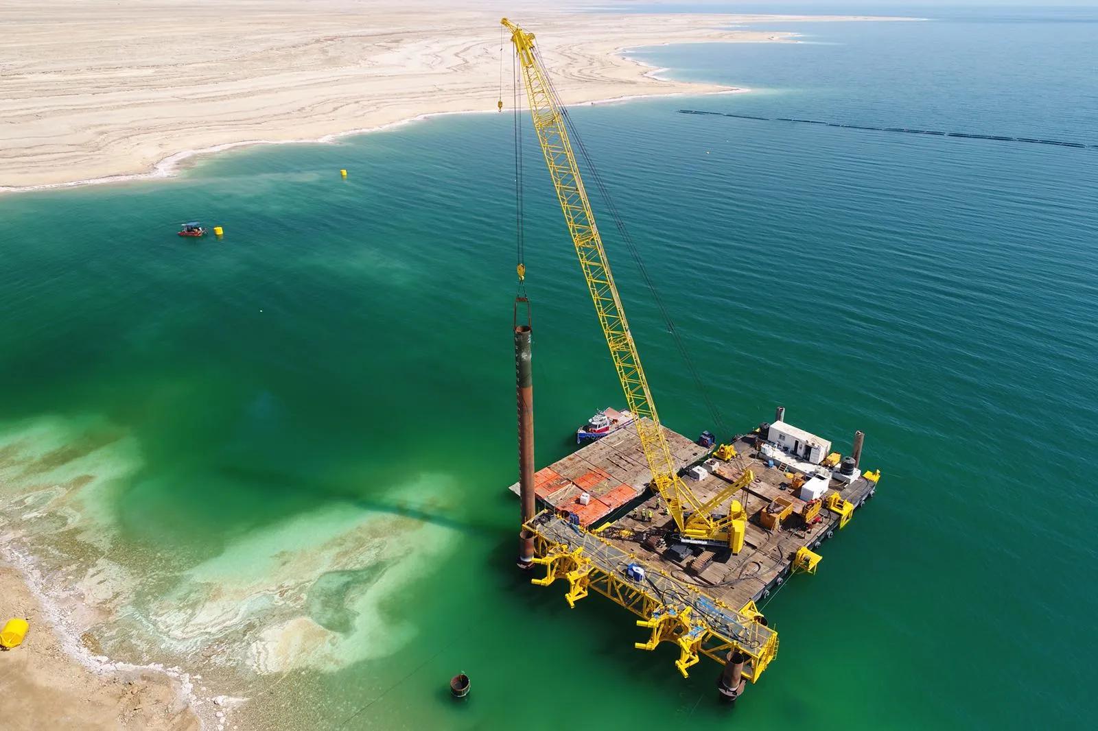 Once the drilling tool is inside the pile, it is lowered down to the seabed where is crushes rock following the inner contour of the pile. The DOP150s are located in the drilling tool immediately above the drive of the drilling head. At the deepest point, the DOP pumps work at -60 m below sea level, pumping the tailings from the drill over some 100 metres to the surface.
