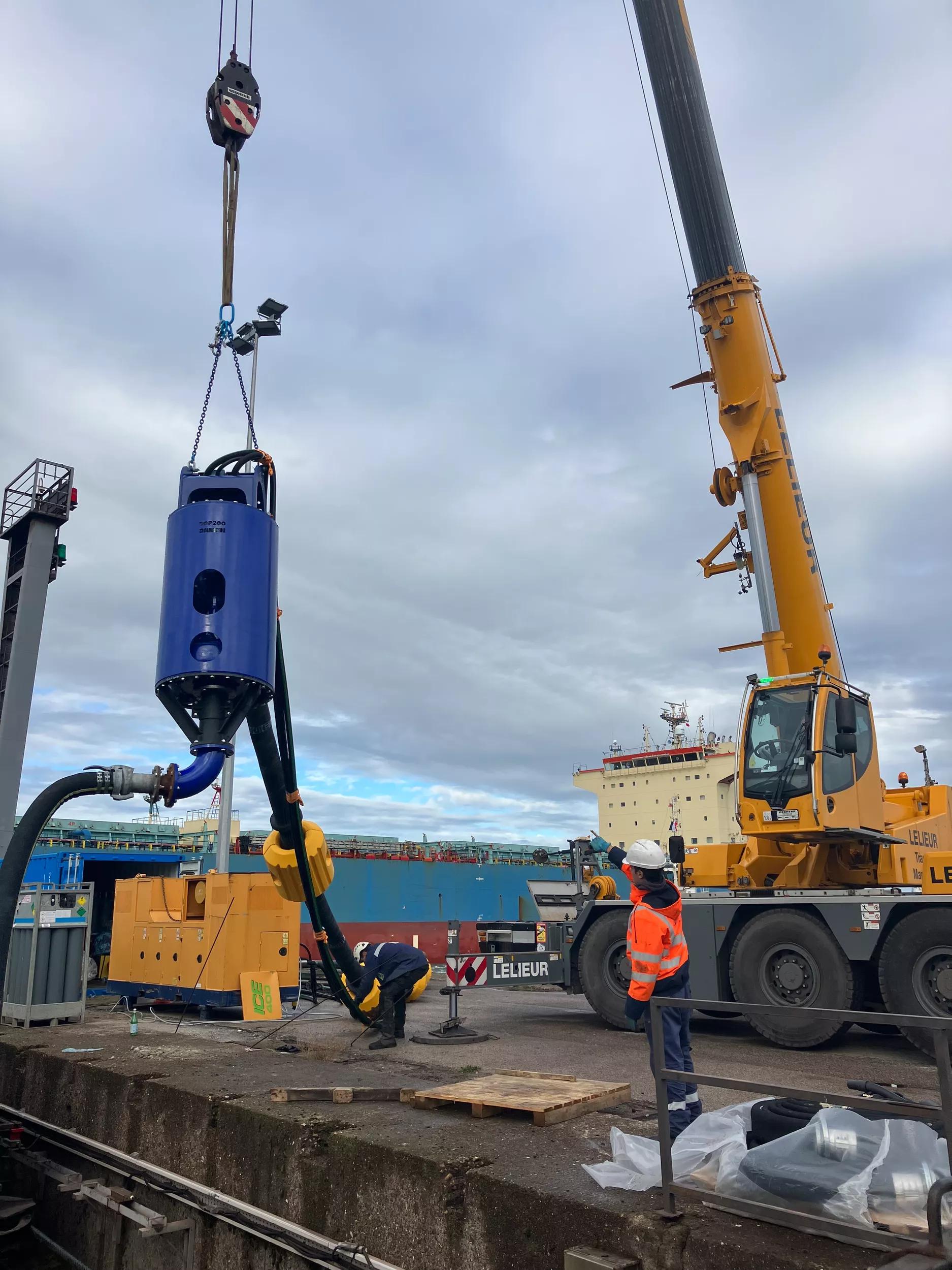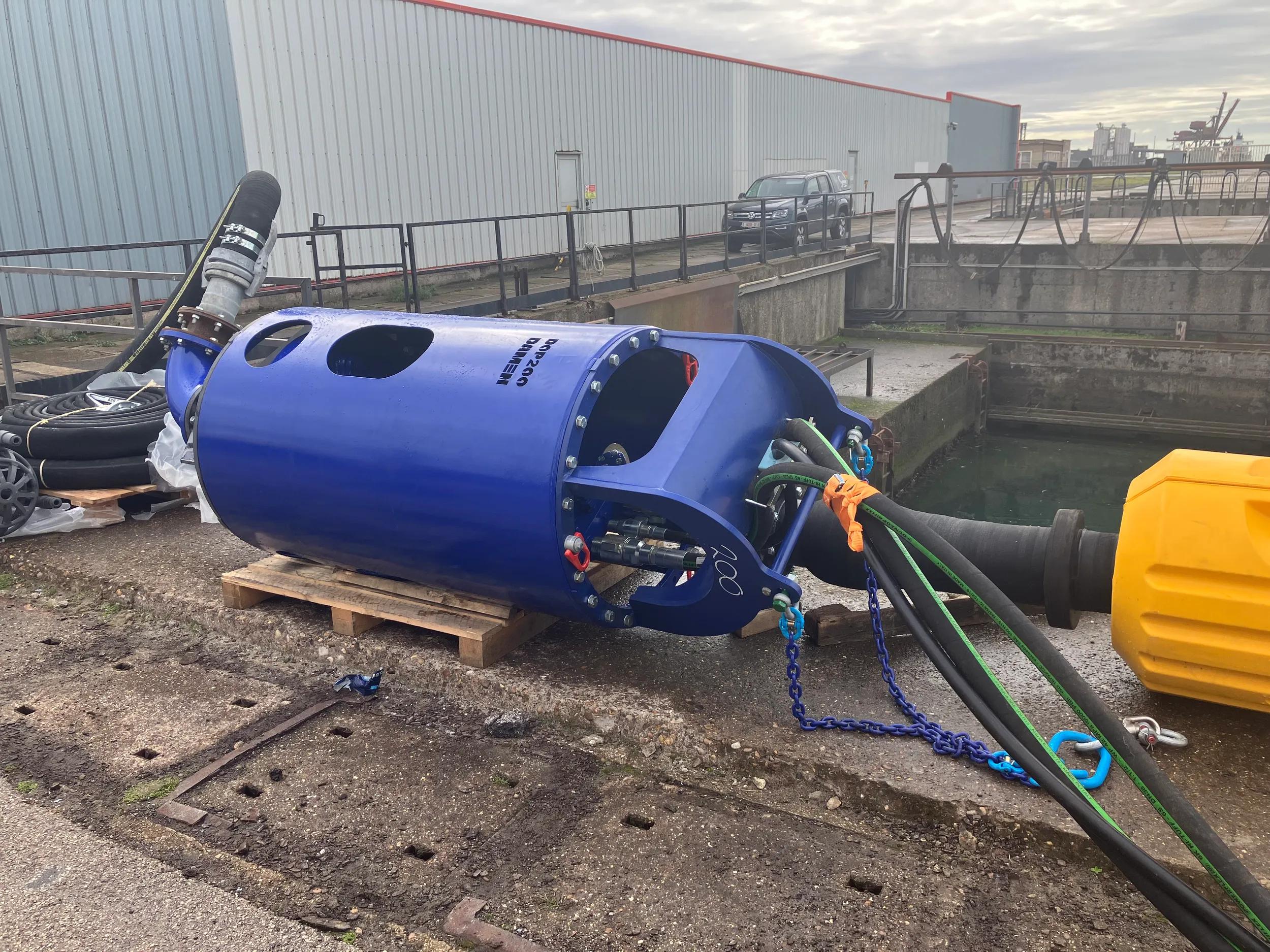 The Belgian specialist diving company SUBMAR BV ordered a DOP200 dredge pump for one specific project: cleaning out the Charles de Gaulle lock in Dunkerque, northern France. The lock, measuring 365 by 50 meters, involves a structure with four rolling doors of 1,700 ton each. These doors are to be opened and closed without at hitch, which requires maintenance dredging of their surroundings.