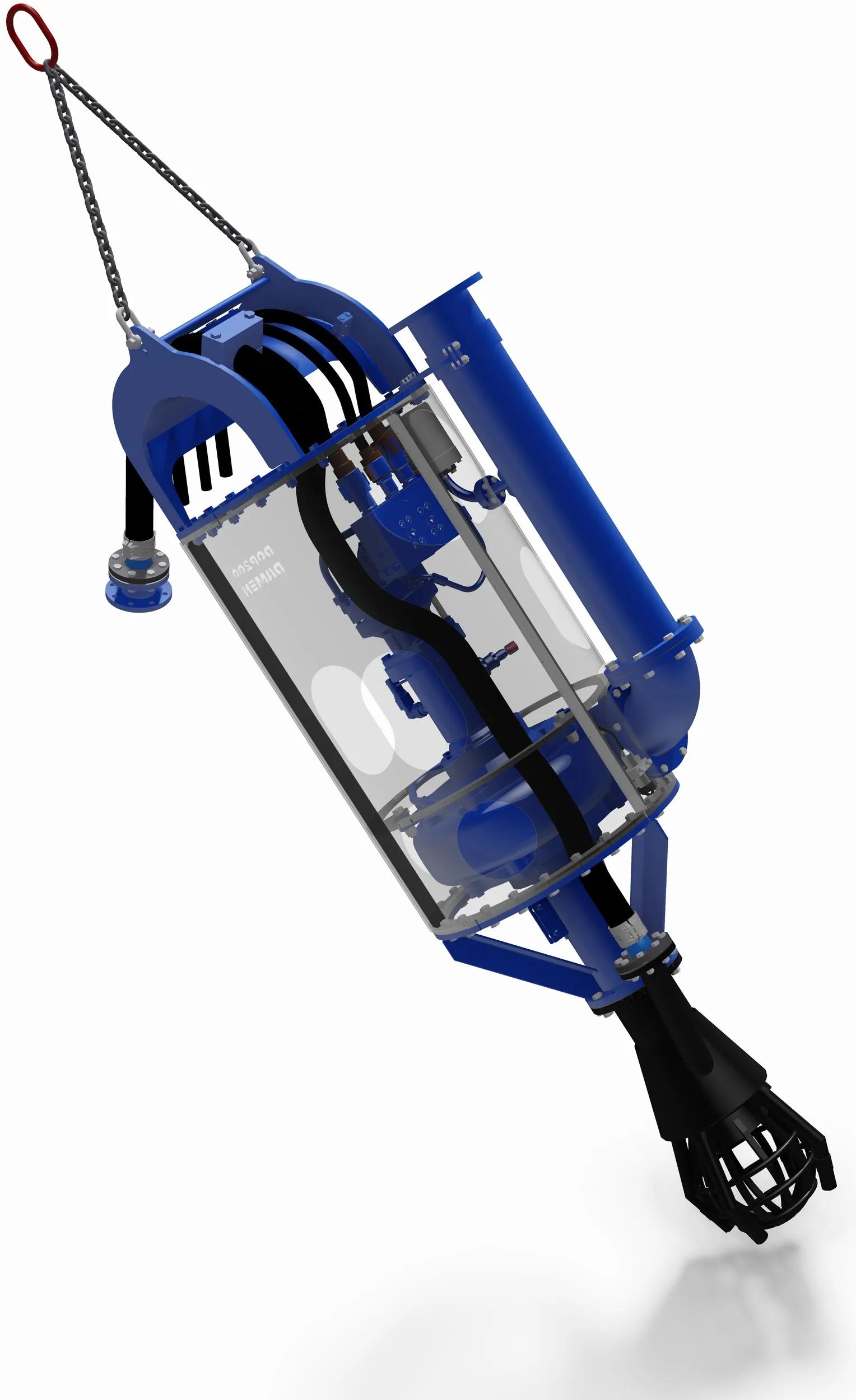 Some 400.000 m³ of contaminated sediments were dredged using a hopper dredger. The dredger passed the area slowly creating minimal turbulence. The hopper hold of the dredger was emptied by means of the DOP200. The submersible dredge pump was lowered into the hopper, where it pumped a mixture of the highest possible concentration to the dewatering plant.