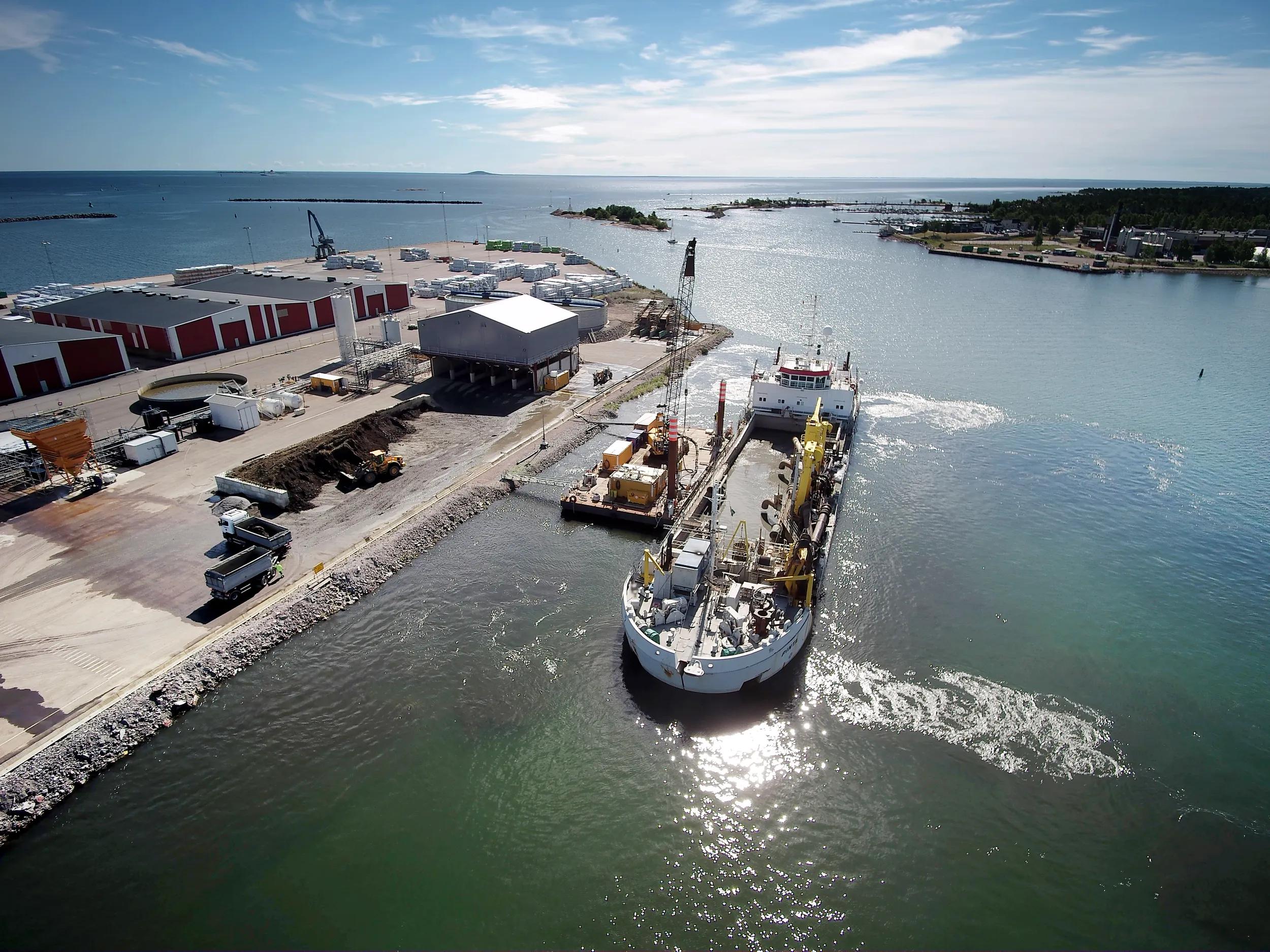 The city council awarded the job to remediate the Oskarshamn harbour to Envisan, a company specialized in environmental remediation. Envisan constructed a complete treatment facility on site for treating the contaminated dredged sediments. A filter press was used to dewater the dredged sediments: The dry material was ultimately transported to a landfill nearby, and the process water was treated before discharge.
