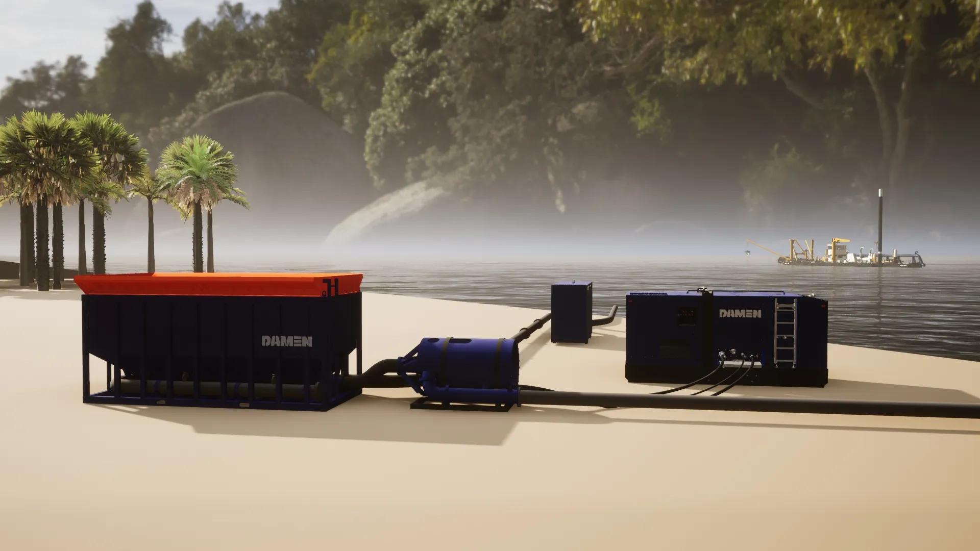 The Soil Pumping Station SPS2020 is based on a 20-foot container, fitted out with everything required for dumping dry mined material in, and pumping a fluidised mixture out. The fully mobile unit can be relocated easily, as can its matching separate water supply unit, dredge pump and drive. These standard units are a turnkey solution, all built for heavy duty operations in the dredging and mining industries. The sand pumping station is the linking pin between dry mining and tailings transported by dredge pump through a pipeline. Pipeline transport significantly reduces the levels of dust and noise, and can completely replace truck and conveyer haulage. Road safety will also improve dramatically as the constant flow of dumper trucks are no longer required. The throughput rates of mined tailings will remain high.