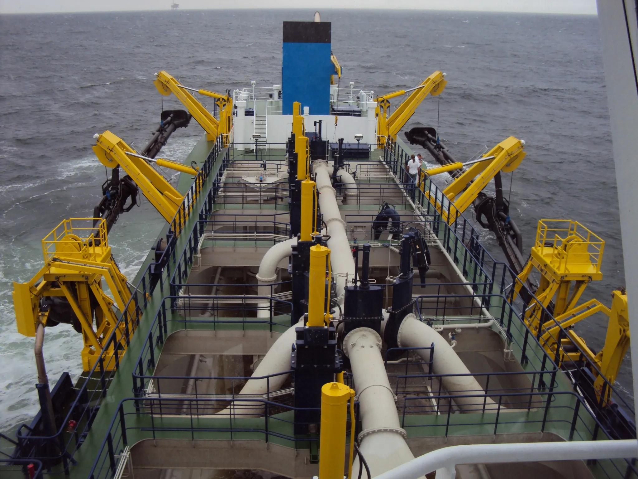 For TSHD newbuilds or dredge renovations, Damen offers a complete package of dredging components. This dredge package includes the trailing suction pipe, one or two dredge pumps, and hopper loading and discharging gear such as overflows and dredge valves. All components are integrated into the dredge yards’ vessel design. The tailor-made dredge kit ensures a fit-for-purpose dredging system and a cost-efficient dredger built with proven dredging equipment.