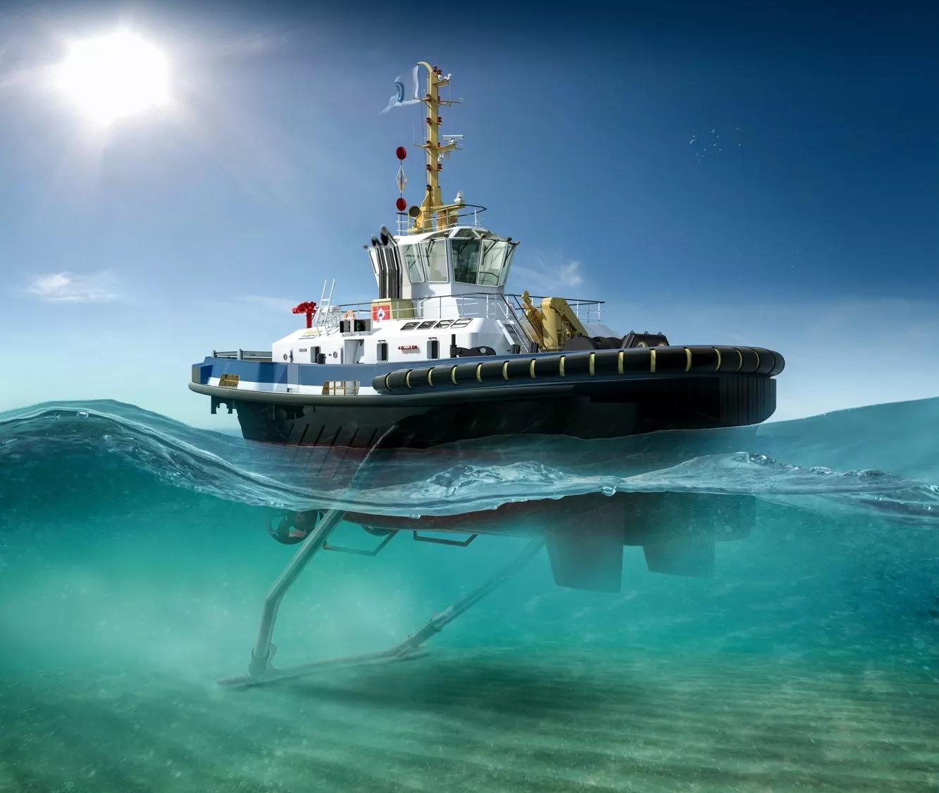 The Reverse Stern Drive (RSD) tug 2915 “Fregate” is a harbour tug. It offers its towage services using its 42.5 tonnes of bollard pull in the harbour of Cayenne, French Guyana. The tug is 29.2 metres long and is fitted with our hybrid drive. These are the basic requirements for a tug. Yet in this case there are two additions: the tug is fitted out with fire-fighting equipment and with a Water Injection Dredging system to help keep the port at the right depth.