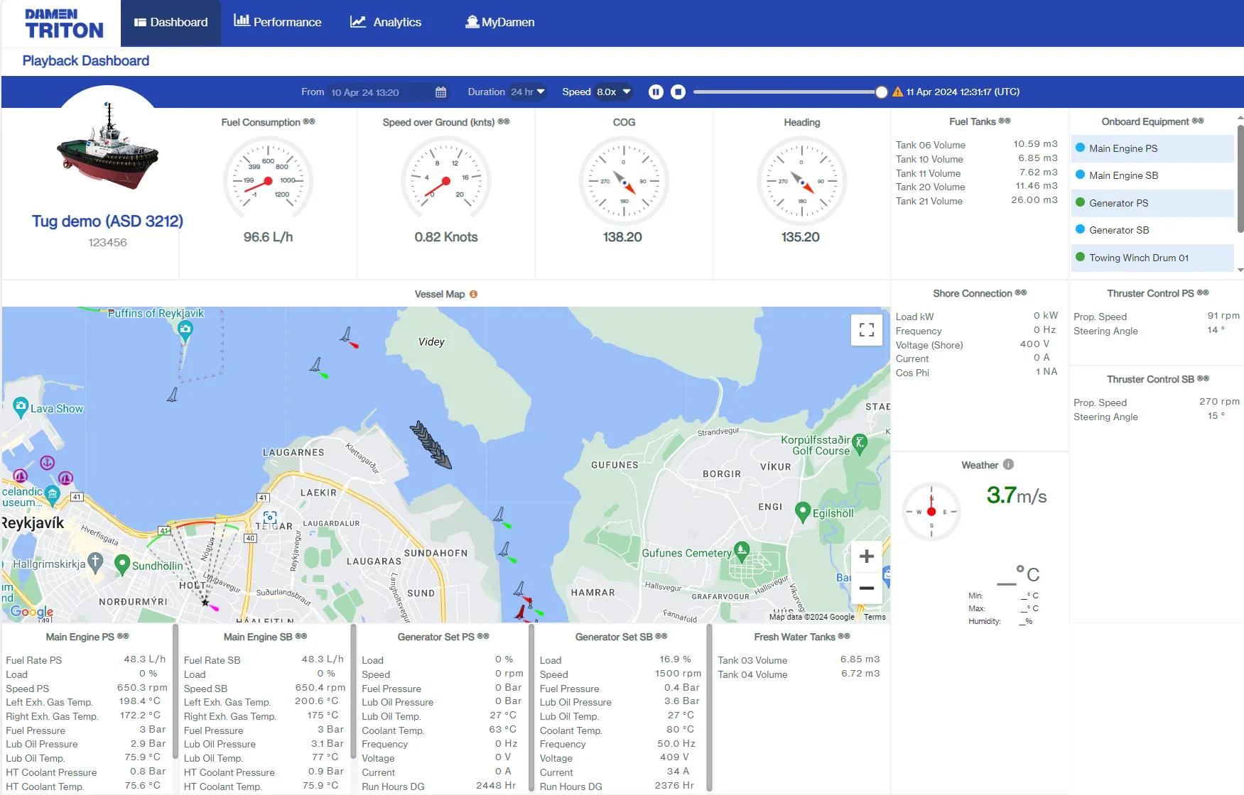 Our emission report combines the vessels sensor data with the design knowledge, resulting in various automated reports, focused on emissions. Damen Triton provides you with valuable insights, creates awareness and stimulates to reduce emissions.