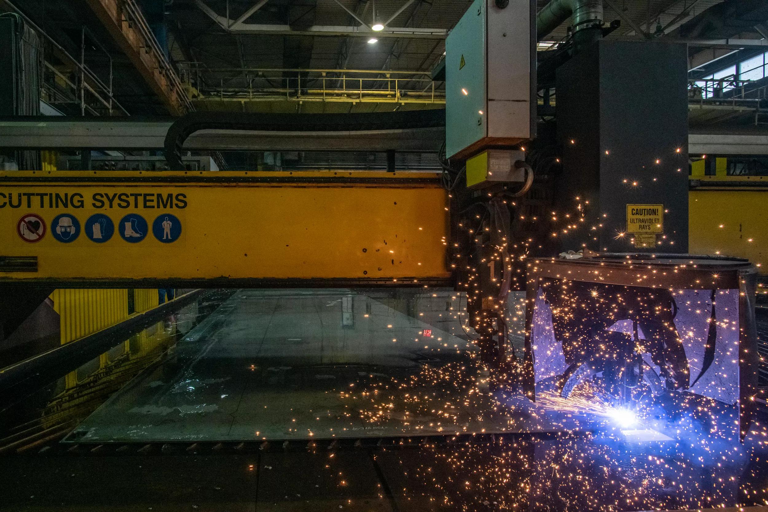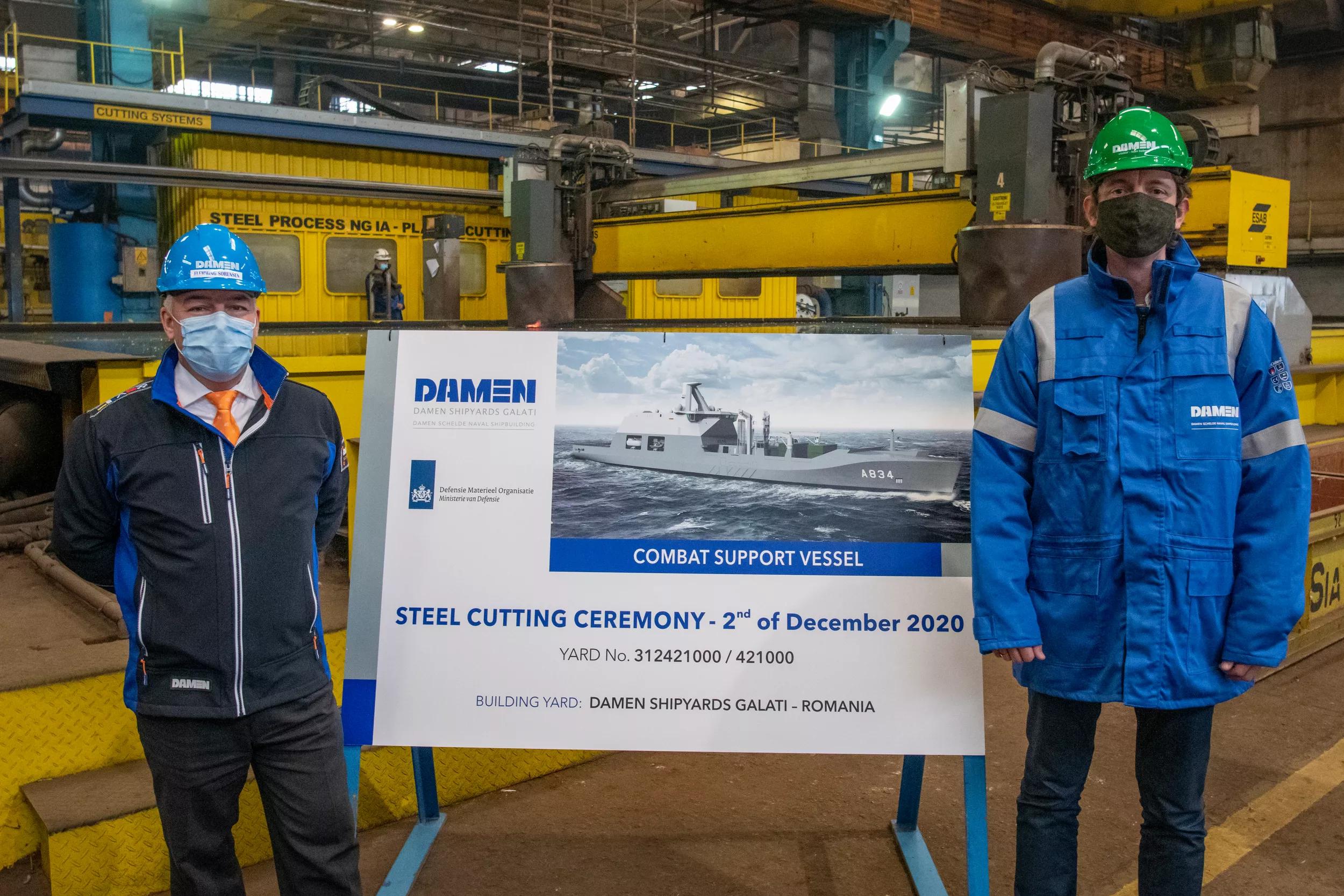 On December 2nd at Damen Shipyards Galati, Romania, first steel was cut on the Royal Netherlands Navy’s (RNLN) Combat Support Ship (CSS) Den Helder. The cutting is the first of sixteen batches, totaling 7500 tonnes of steel in 180 sections.