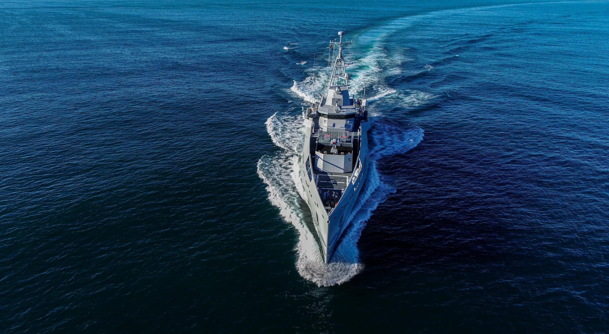 The MMIPVs are designed to deliver a rapid response capability along South Africa’s coastline to counter piracy, illegal fishing, and smuggling operations. Their Sea Axe Hull design, patented by Damen, ensures exceptional seakeeping behaviour, reduced fuel consumption, and enhanced safety and comfort onboard.