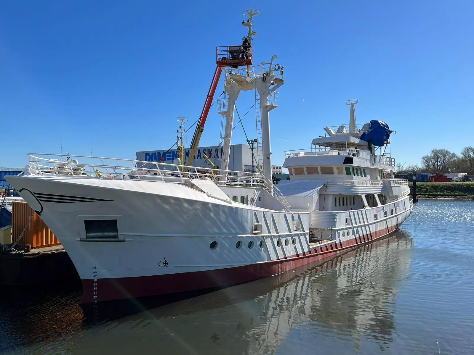 The Scintilla Maris was a 45.6-metre beam trawler launched in 1988. The beam trawler was the first of eight sisterships built by the Damen Maaskant in Stellendam, which has over 75 years’ experience of building fishing vessels, research vessels and offshore vessels. The new owner wanted a new build Explorer vessel in existing hull, because of the exceptional quality of the hull: design, engineering and construction.