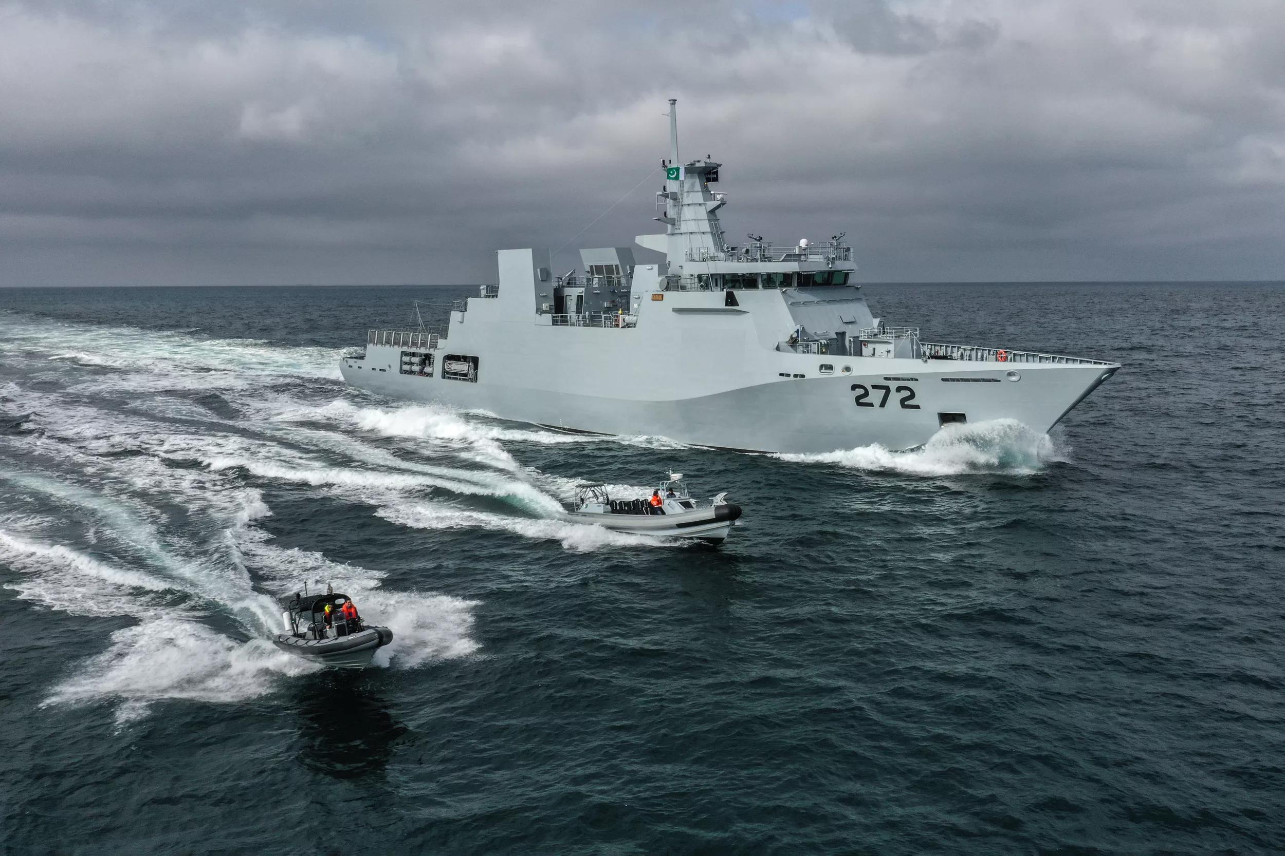 Like her sister vessel, PNS Tabuk is a multipurpose, highly adaptable platform, capable of performing a wide variety of operations in a complex maritime environment. She is able to launch a helicopter and a UAV, as well as two RHIBs simultaneously.