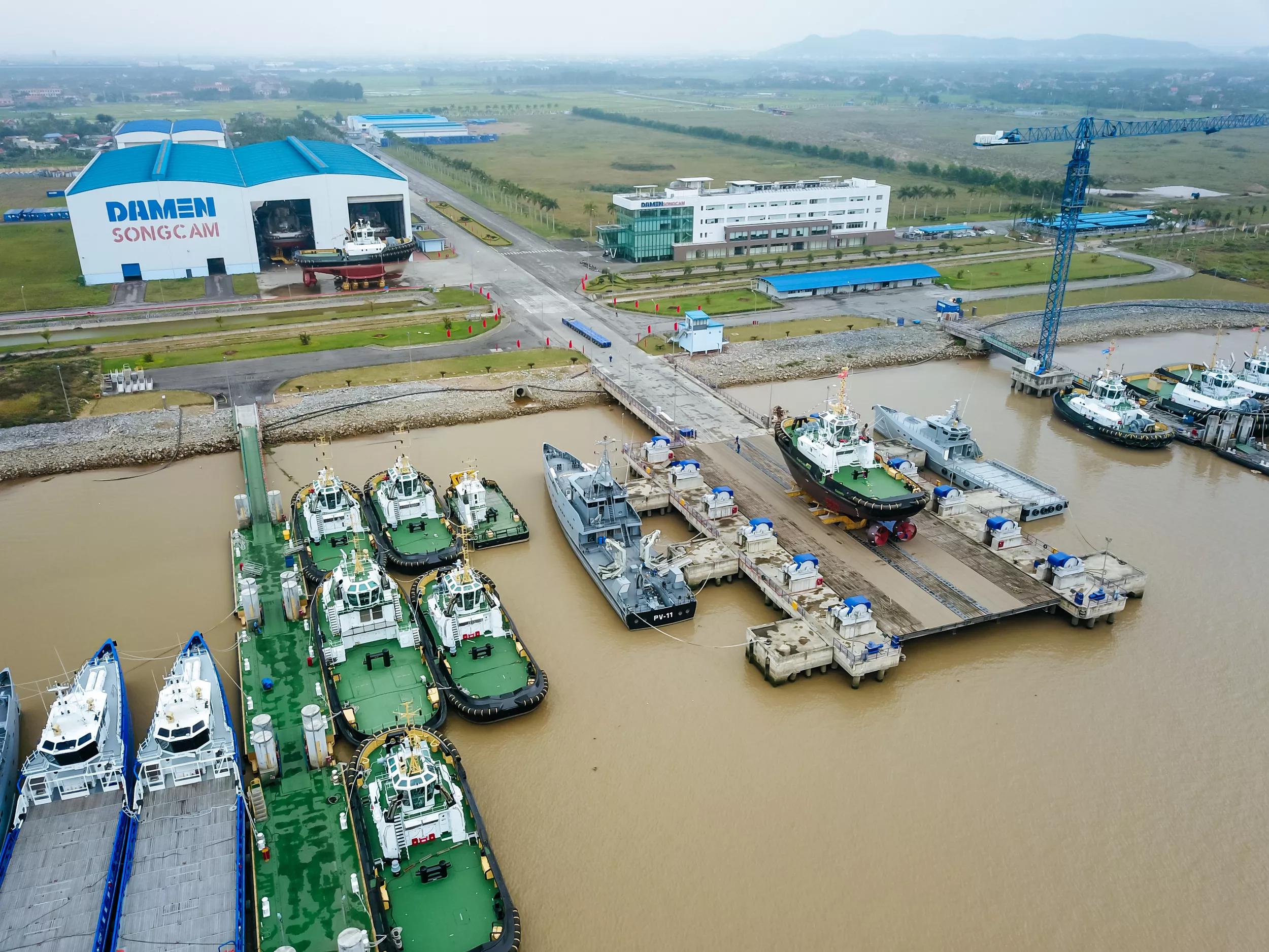 Damen Song Cam Shipyard (DSCS) is well positioned geographically to meet the needs of the region’s wind farm operators, and it also has experience in the large-scale, series production of workboats, in 2015 it became the first tugboat factory in the world and to this day it continues to produce high quality tugs for stock, enabling rapid delivery at economical prices, along with other workboats.