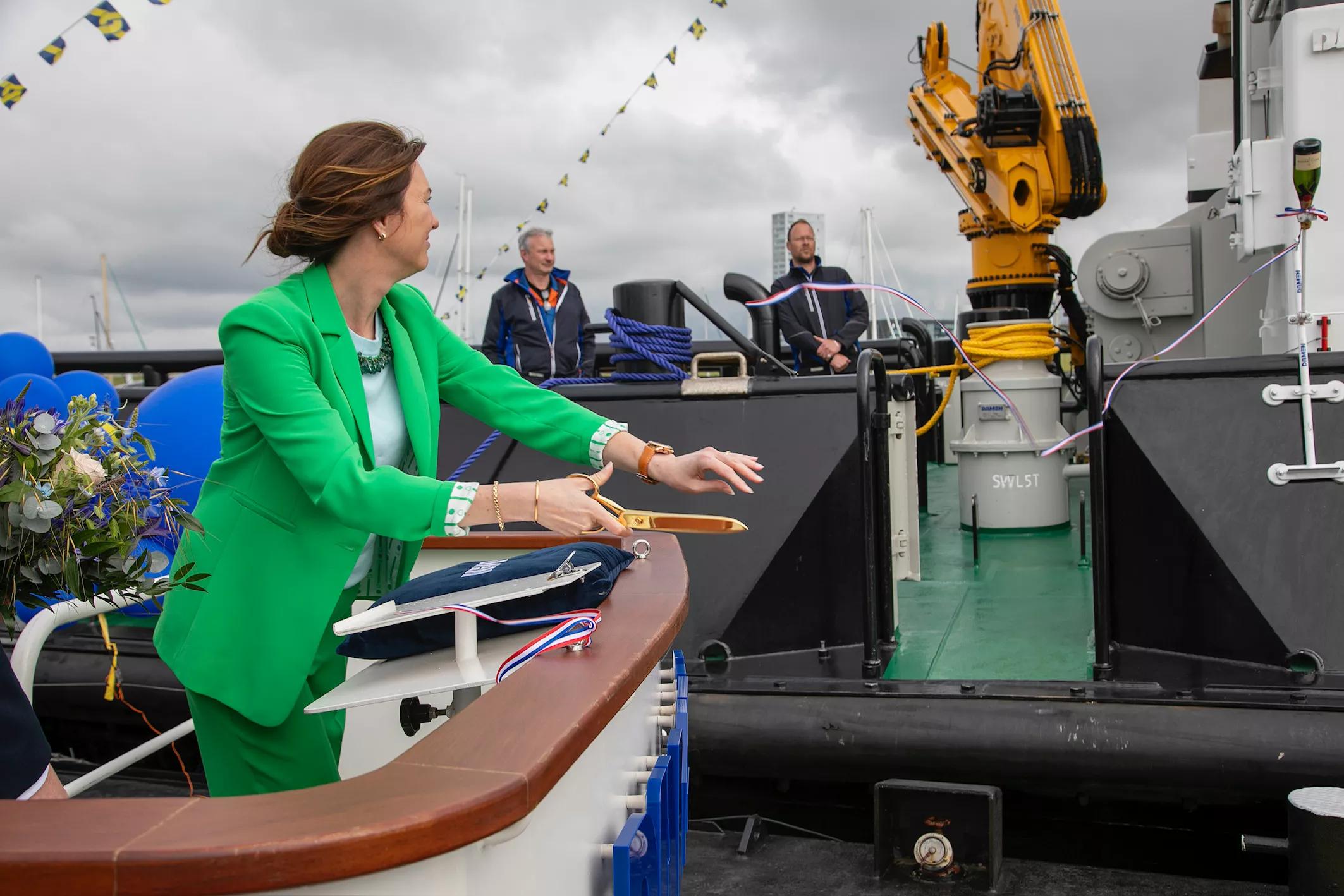 Multraship’s HR Manager Chrétienne Huisman is cutting the ceremonial ribbon