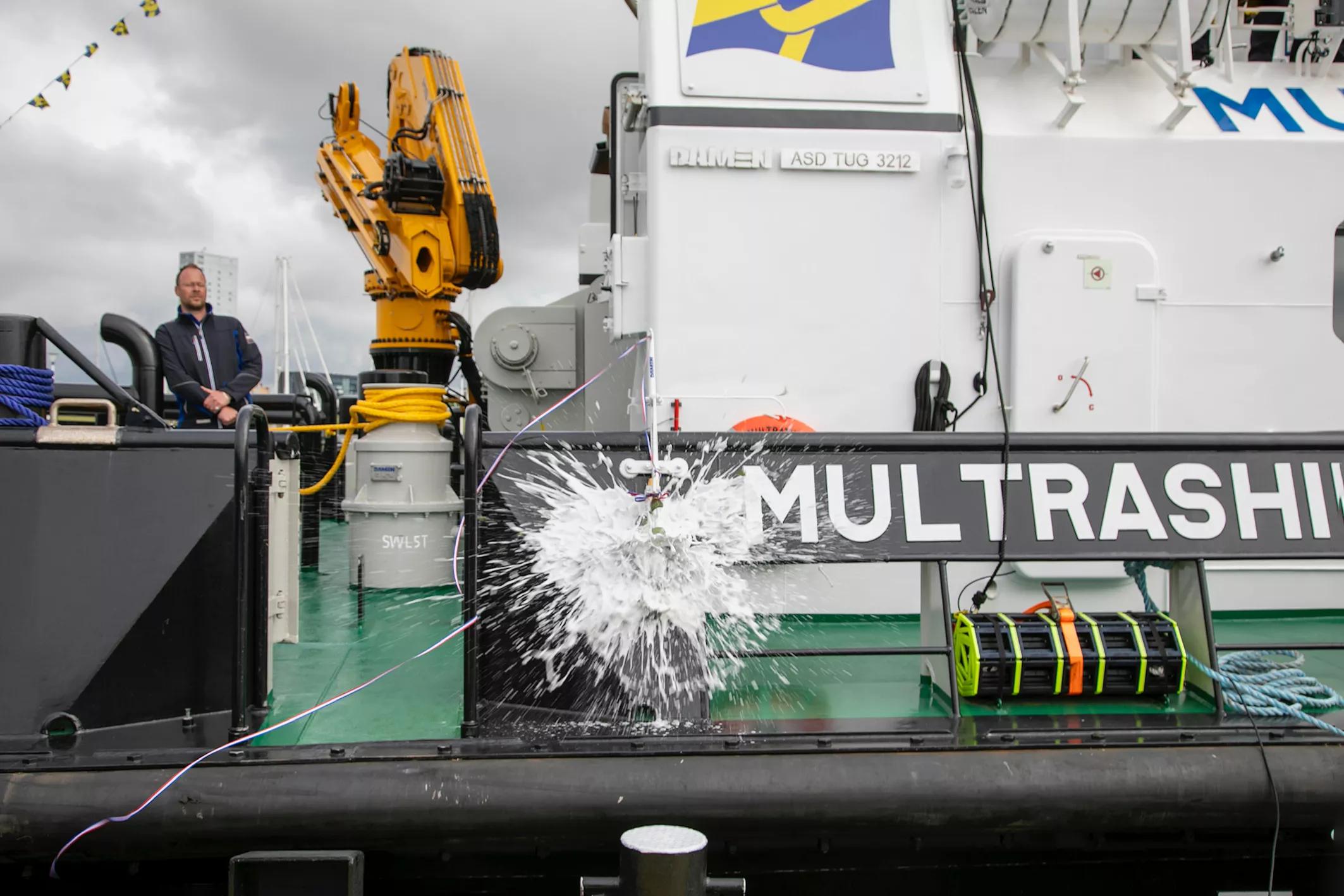 Multraship Towage & Salvage held a Christening ceremony on 30 May to name their newest tug Multratug 35 at their home port of Terneuzen, the Netherlands. The vessel is a Damen ASD Tug 3212. Multraship’s HR Manager, Mrs Chrétienne Huisman did the honours and wished the tug and her crews fair winds and following seas.