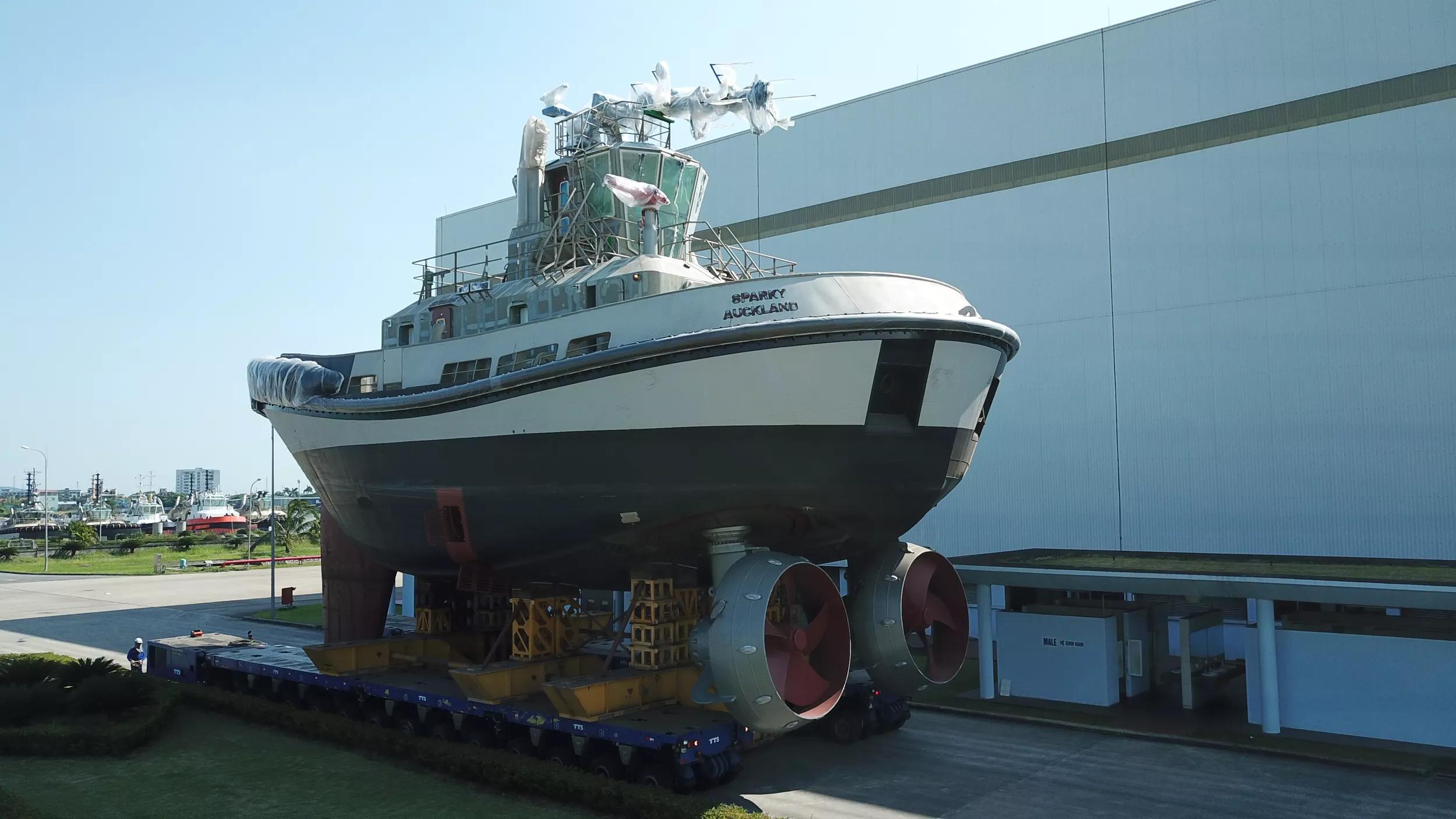 Damen Shipyards Group has reached a major milestone in the construction of its first fully-electric Reversed Stern Drive tug. The shipbuilder is constructing the RSD-E Tug 2513, named Sparky, for New Zealand’s Ports of Auckland. Recently, Damen Song Cam Shipyard in Vietnam installed the tug’s batteries.