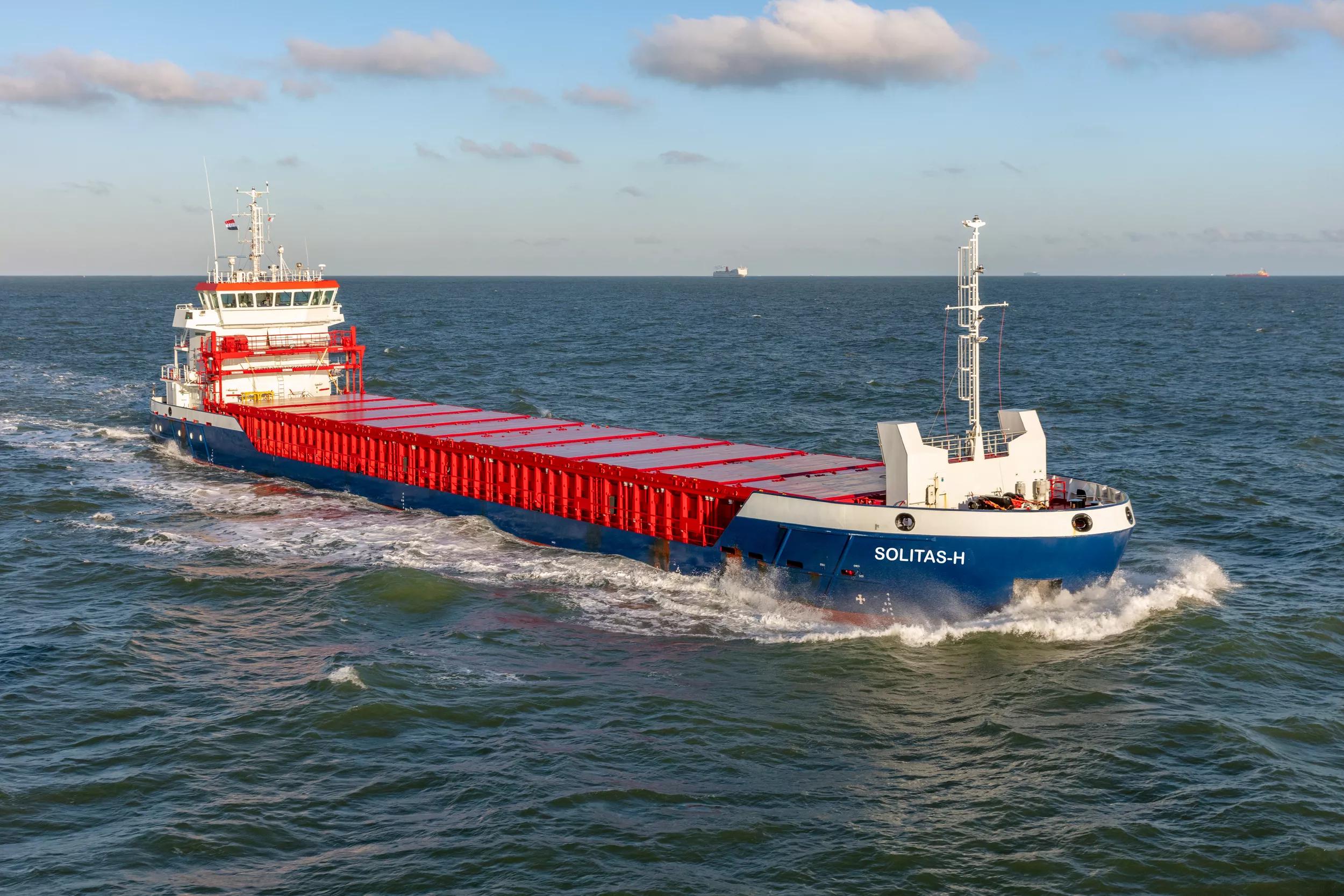 The two new vessels Unitas-H and Solitas-H are already in full operation in typical European shortsea trades, transporting a variety of cargoes like steel, woodpulp, grain, fertiliser in bulk or in big bags. These are the first two operational CF 3850 vessels built to the new and improved design from Damen.