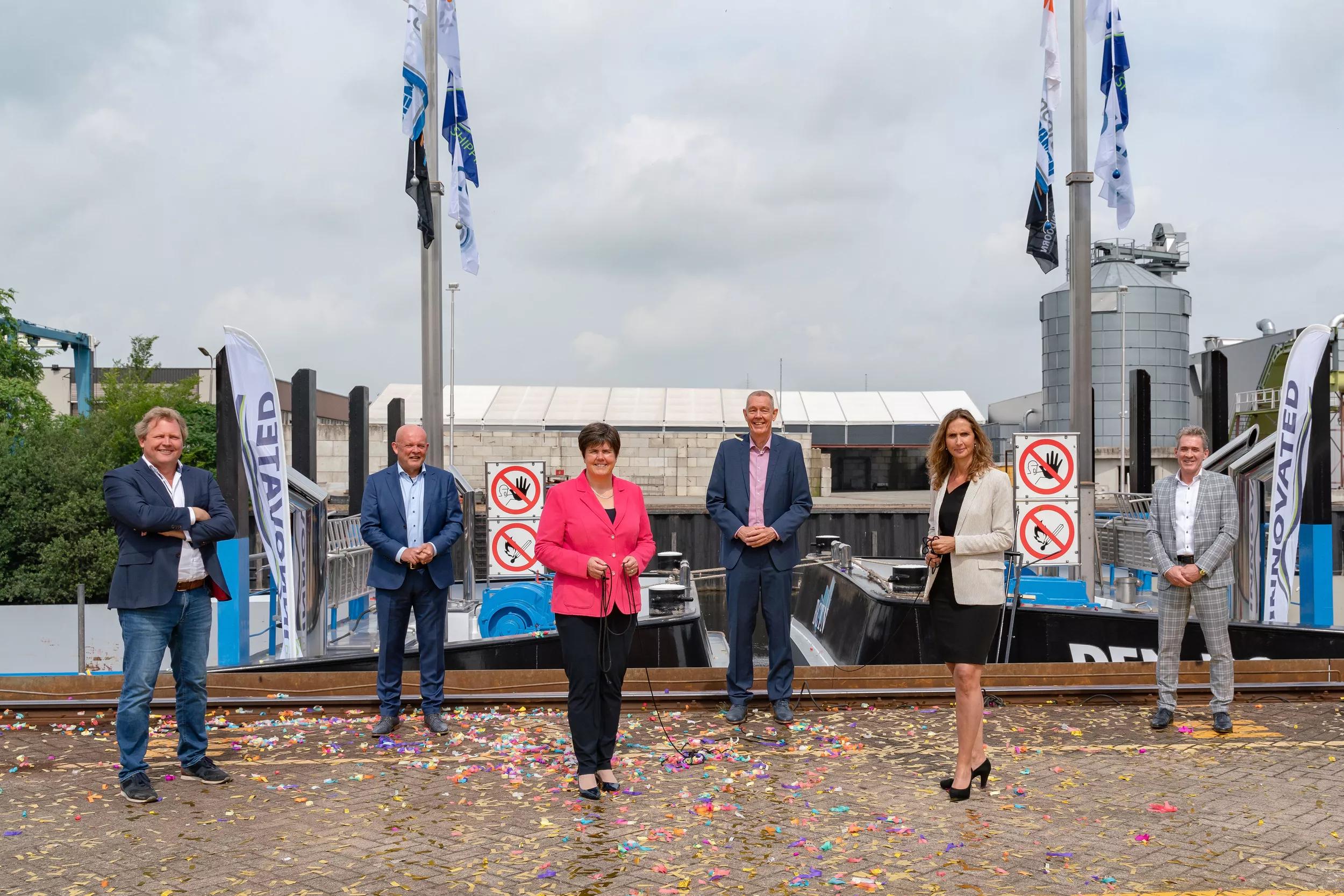 Diederik Antvelink (CEO Nedcargo), Joop Mijland (CEO BCTN Group), I. Adema (Royal Commissioner), Willem Dedden (CEO Zero Emission Services), Nicole Verduijn (partner of Heineken’s logistics manager), Chris Kornet (CEO Concordia Damen Shipbuilding)