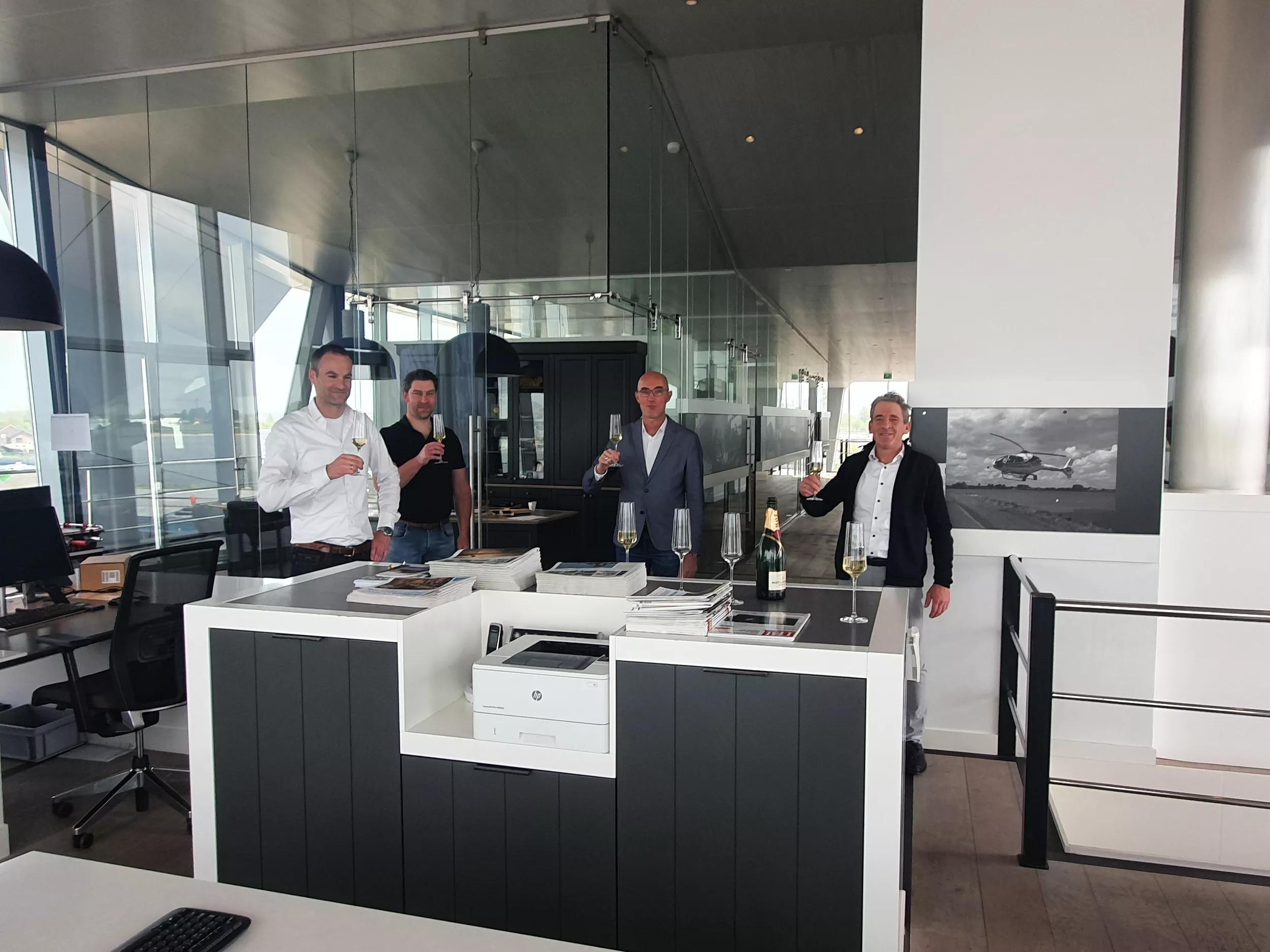 Tim van Berchum (Financial Manager, Concordia Damen Shipbuilding), Pieter Baggerman (Naval Architect, Concordia Damen Shipbuilding), Harm Lenten (Owner, Lenten Scheepvaart), Chris Kornet (CEO, Concordia Damen Shipbuilding).