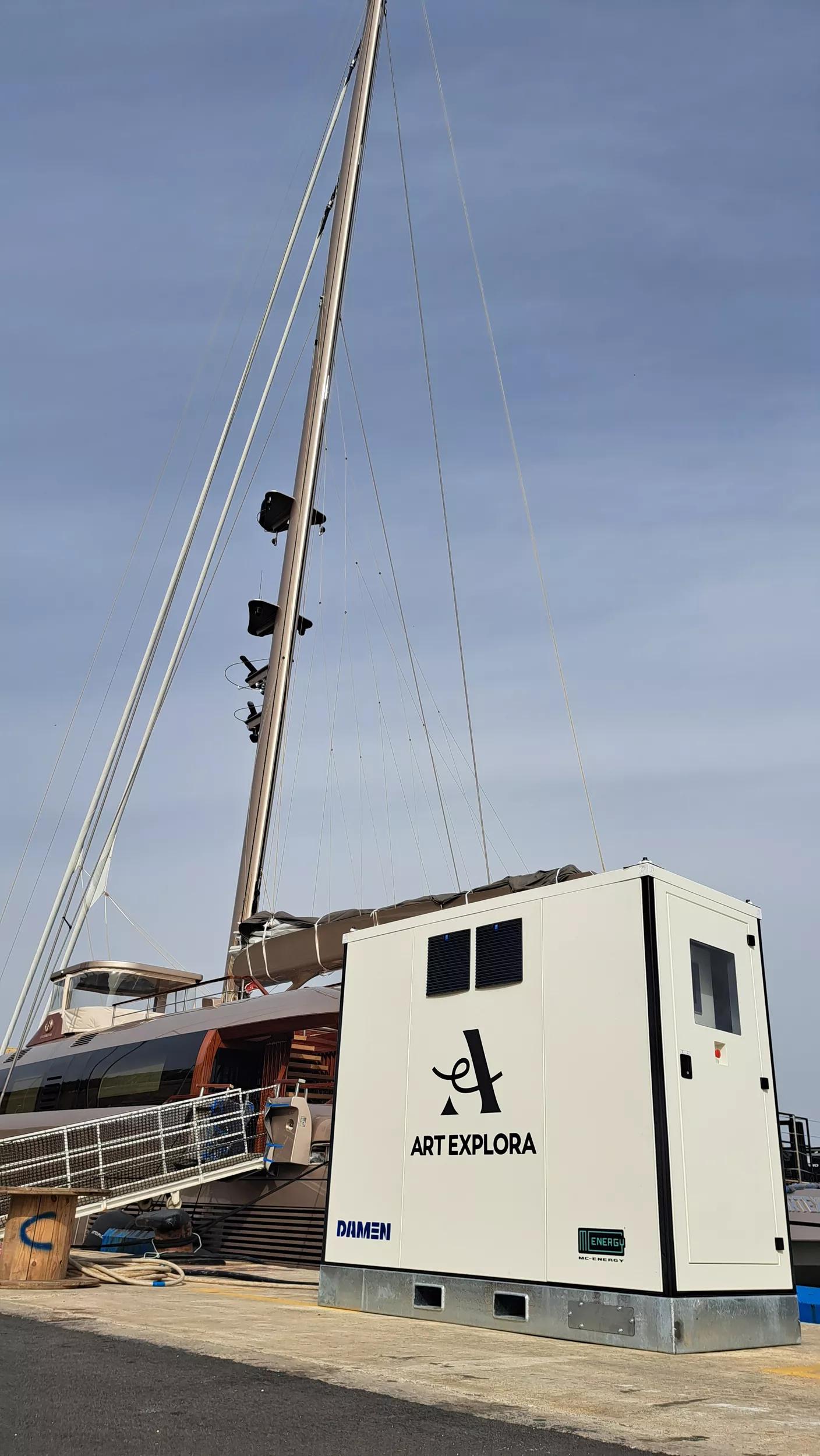 Due to the dual role of the yacht, a clear electrical separation was implemented between the hotel and museum segments. Art Explora system architect Guy Butterati said: "Due to weight restrictions, it was not possible to install a second galvanic isolation for the museum system on board the yacht. In addition, we have plans to present the yacht as a museum beyond the borders of Europe. A less stable electrical network is expected in this new environment. The Damen B-Shore is the ideal solution for us to deal with these issues.”