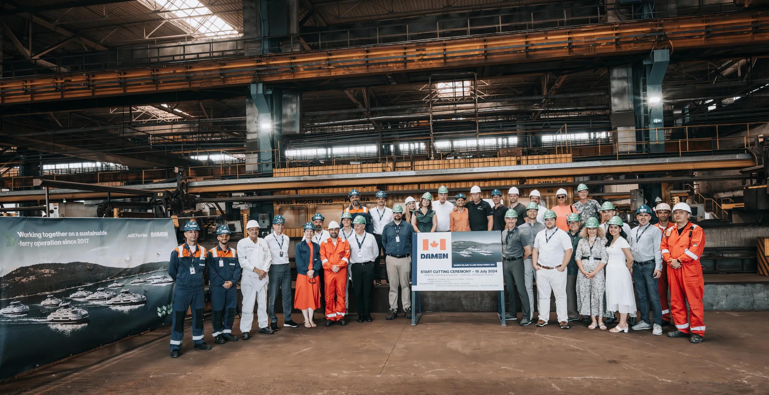 Damen Shipyards Group has celebrated a milestone moment for maritime sustainability at its Romanian yard, Damen Shipyards Galati. On 16 July, the yard cut first steel on the first two of four, fully electric Island Class Ferries that it is building for Canada-based BC Ferries. The ferries will be the first fully electric vessels to operate in the company’s fleet.