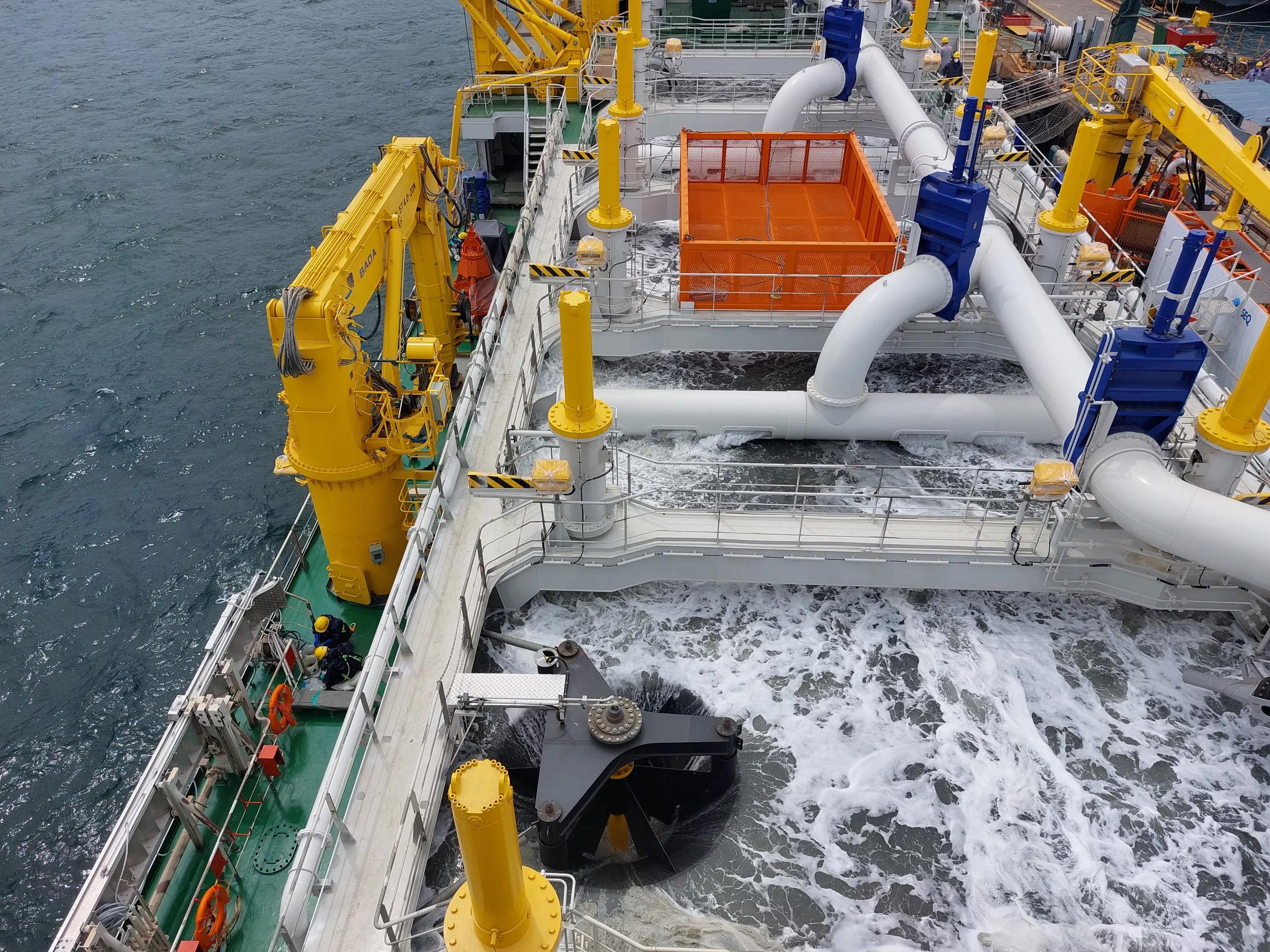 The turnkey dredging system included a 900 mm trailing suction pipe designed for the vessel