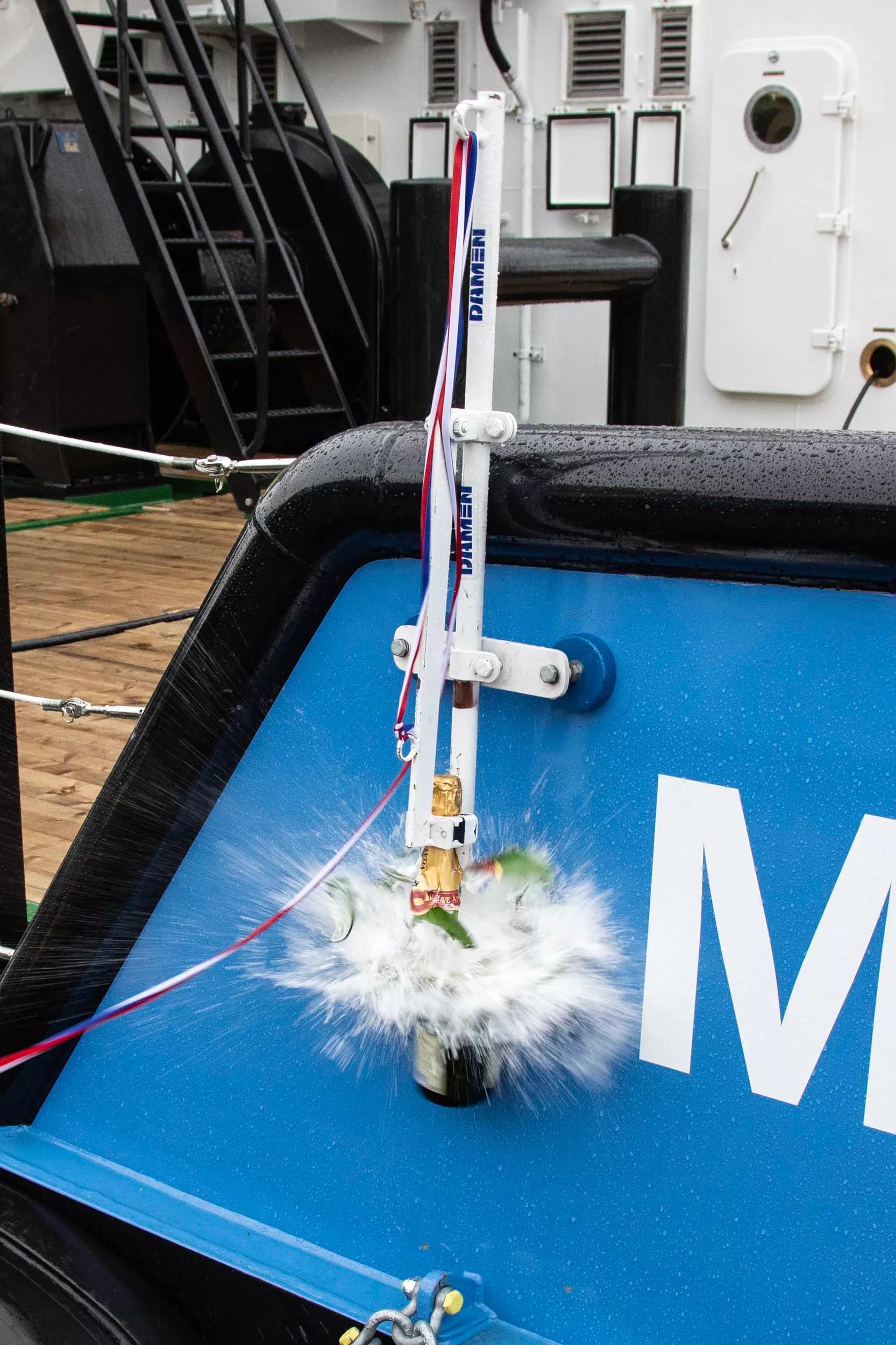 The christening and handover took place on the tenth of November at Damen Shipyards Gorinchem. The new vessel was named MCS Rosie 2 after the youngest child of director Menno and his wife Heather Kuyt. Speaking in English and Dutch, Rosie, who is also the vessel’s godmother, wished the crew safe and prosperous sailing with the vessel.