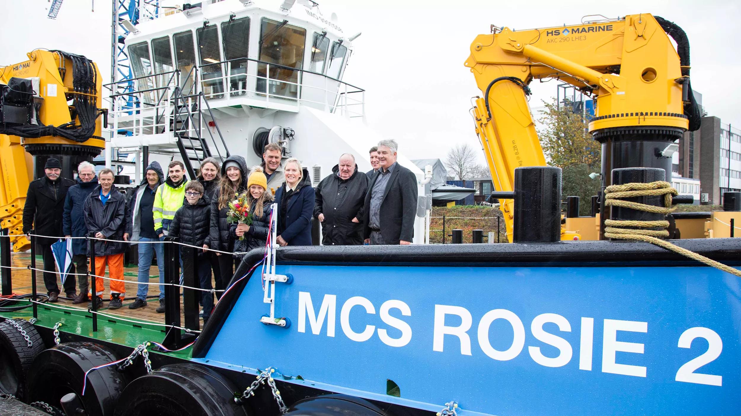 Rosie was photographed onboard with her father Menno, her mother Heather, sister Anneke and brother Cees, alongside MCS co-owner and Rosie’s aunt, Nikki Kuyt. They were joined at the christening by MCS employees Nigel Skea, John Grieve, Galvin Mckechnie and Steve Janes. Hosting the event was Damen’s Jeroen van Woerkum, Commercial Manager at Damen Shipyards Hardinxveld, where MCS Rosie 2 was built.