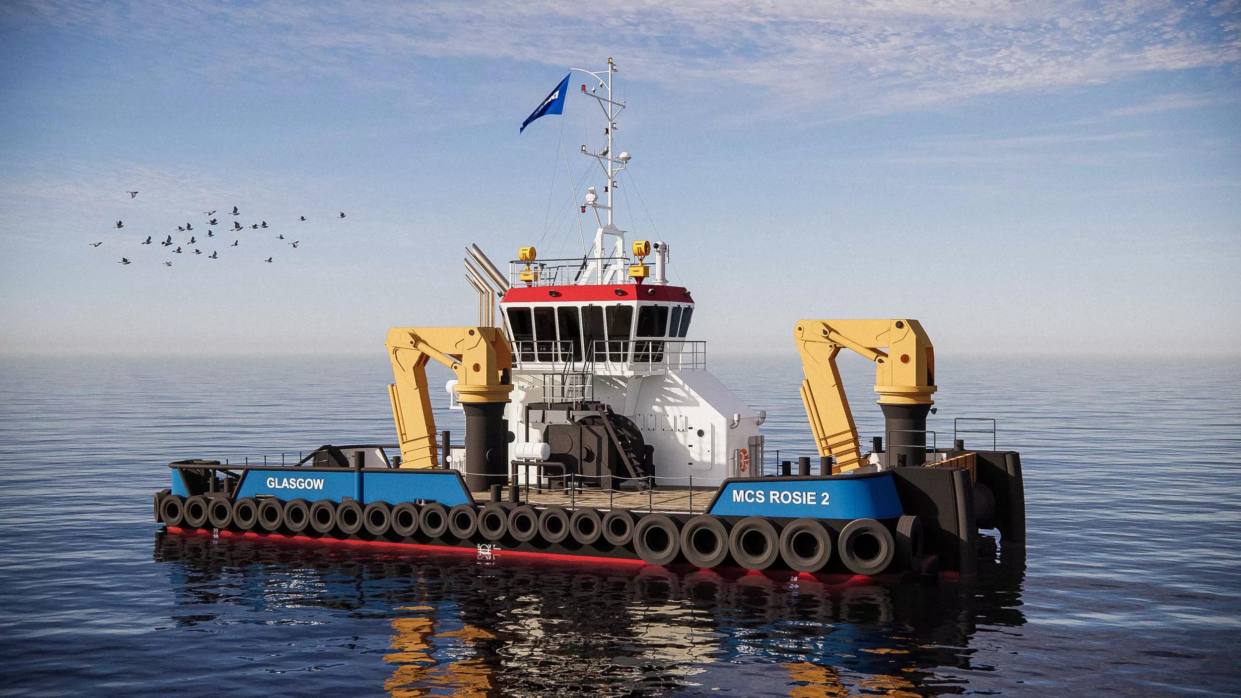 Based on the Firth of Clyde on the west coast of Scotland, Maritime Craft Services (MCS) operates a fleet of 17 workboats, of which 13 have been built by Damen. They are made up of eight Fast Crew Suppliers, two Shoalbusters and now three Multi Cats. The company’s services are in demand across north-west Europe, the Middle East and beyond by offshore energy contractors and dredging clients for activities including anchor handling, towing, cable laying, dive support and general support / supply services.