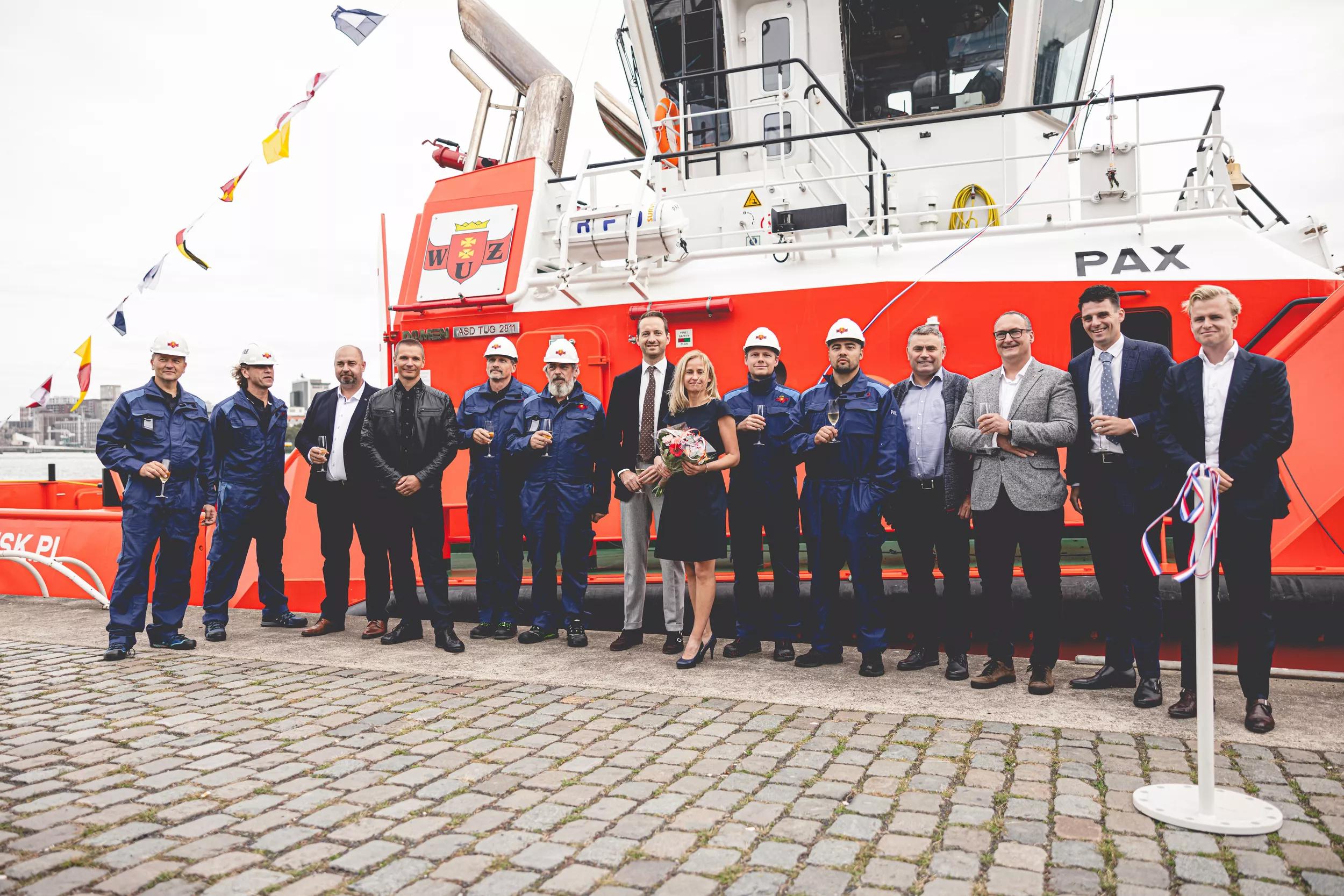 On the 19th of October, the flag raising ceremony for three new ASD Tugs took place in Gdansk, Poland. In the presence of a large group of Polish and international associates and company employees, the new tugs were welcomed into the fleet. This followed the christening ceremony of the second ASD Tug 2811 that took place in September in Rotterdam. Named Pax (in Latin "Peace”), the vessel is the last in a three-tug order placed at the beginning of 2023 by the Polish operator and well-known Damen customer WUZ Port and Maritime Services, Poland’s largest towage company.