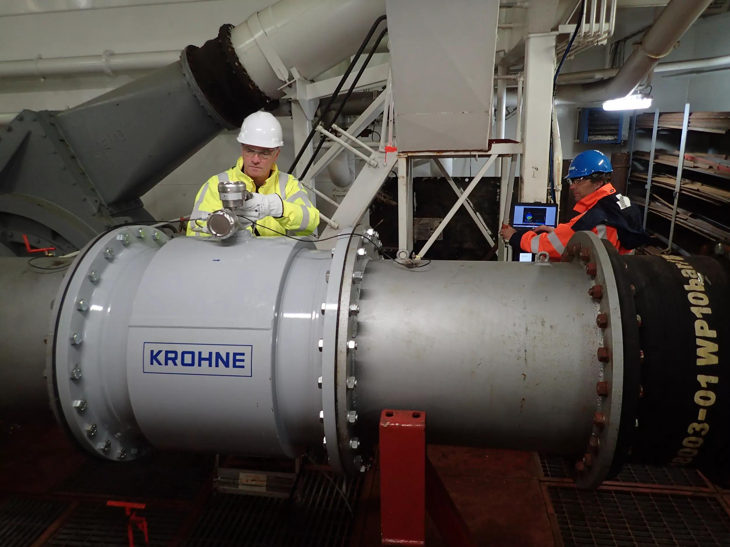 The CombiMeter consists of a flow meter and a density meter. For the flow meter, an electromagnetic flow meter by Krohne Altometer is used. This is a proven concept in the dredging industry. Added to this is a density meter based on electrical resistance tomography, as developed by ITS (Industrial Tomography Systems). Both are combined in an integrated production meter; the CombiMeter. The CombiMeter has undergone a series of extensive field tests in the Damen Dredging test loop, in the ¡VAMOS! mining project and lastly as a full-scale test on the CEMEX aggregate dredger Sand Falcon in a Ø700 mm pipeline.