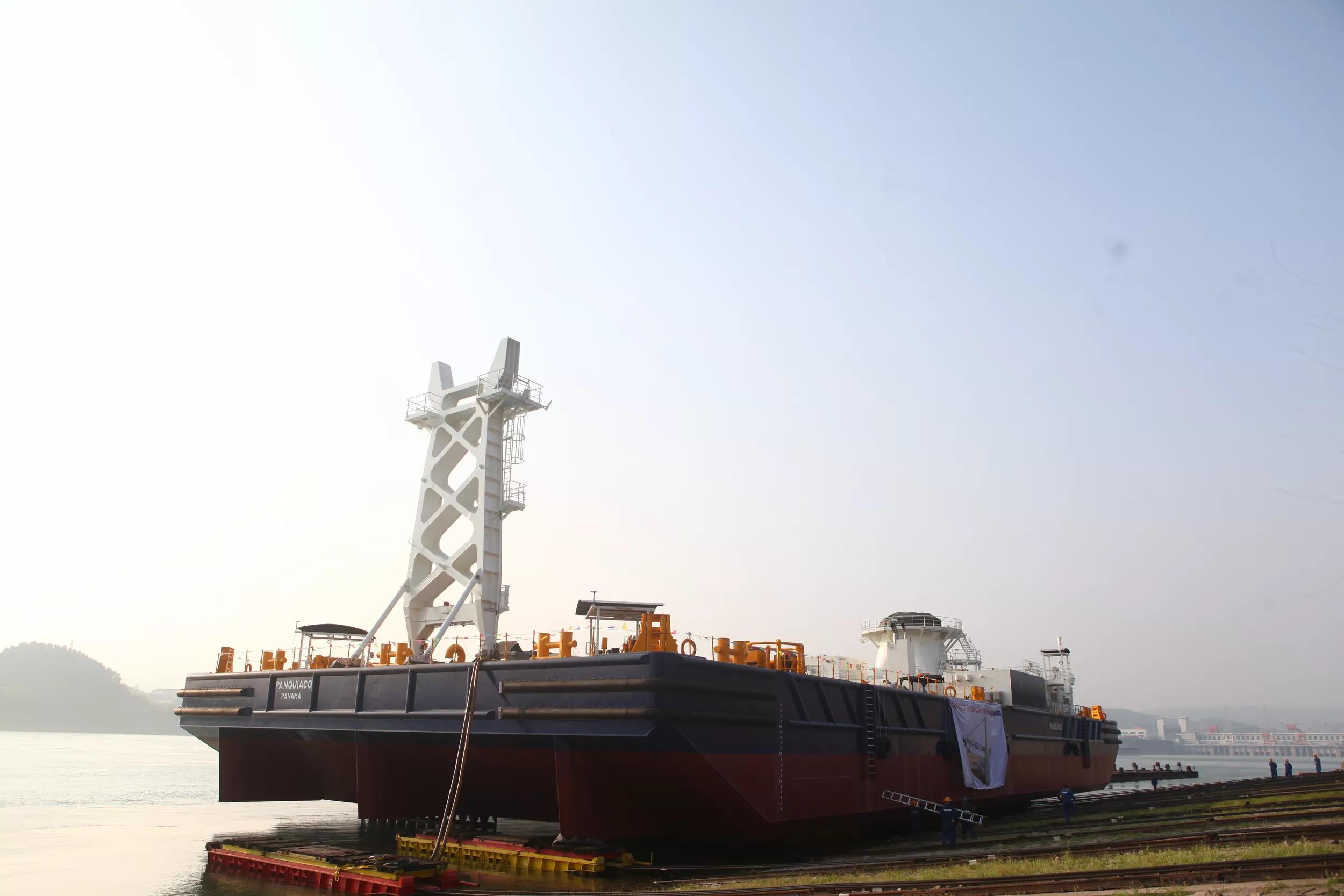 On 13th April, Damen Yichang Shipyard launched a 75 x 32 metre Crane Barge into the water. The event was seasonally timed to ensure the correct water depth needed to perform the successful launch of the barge.