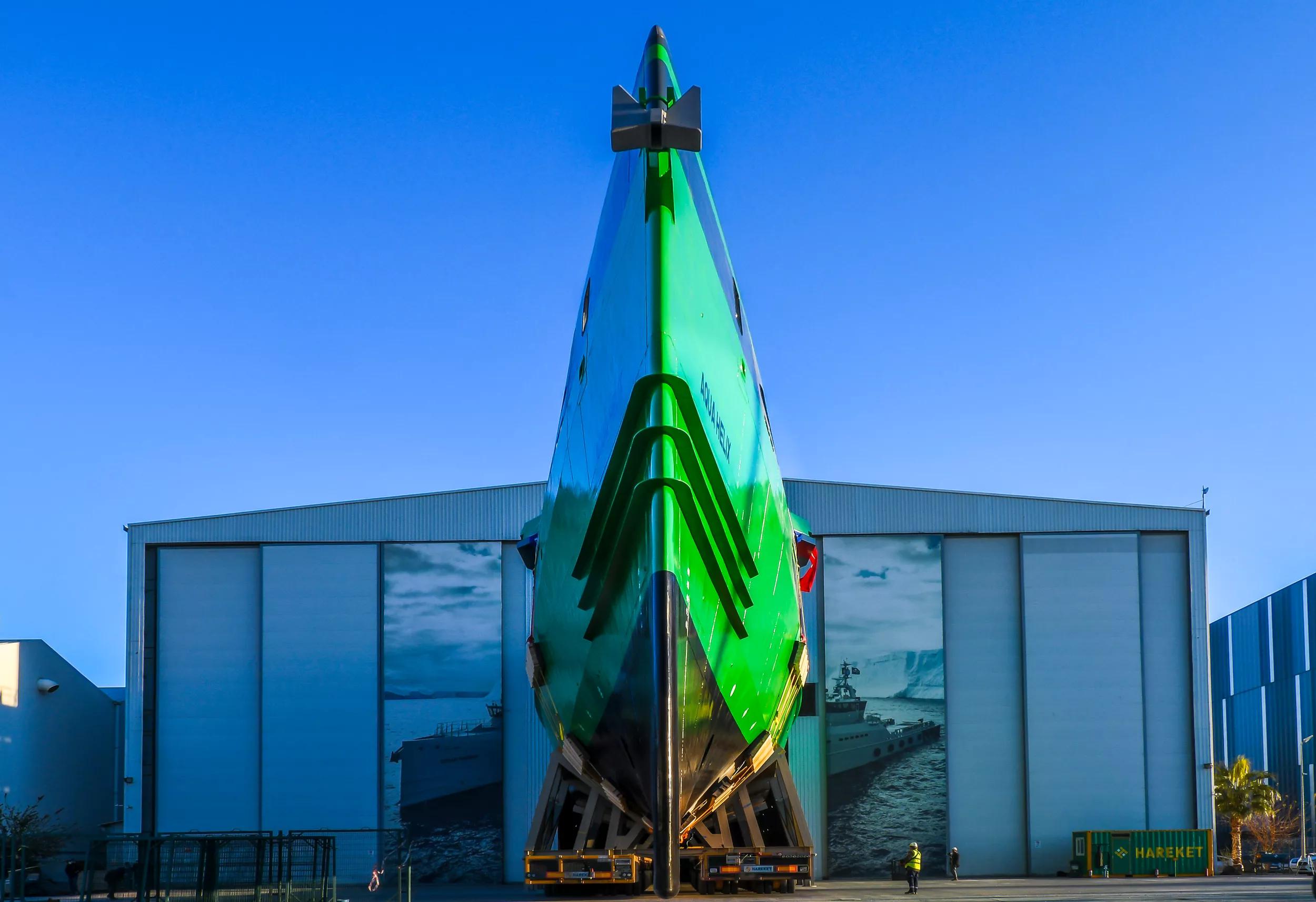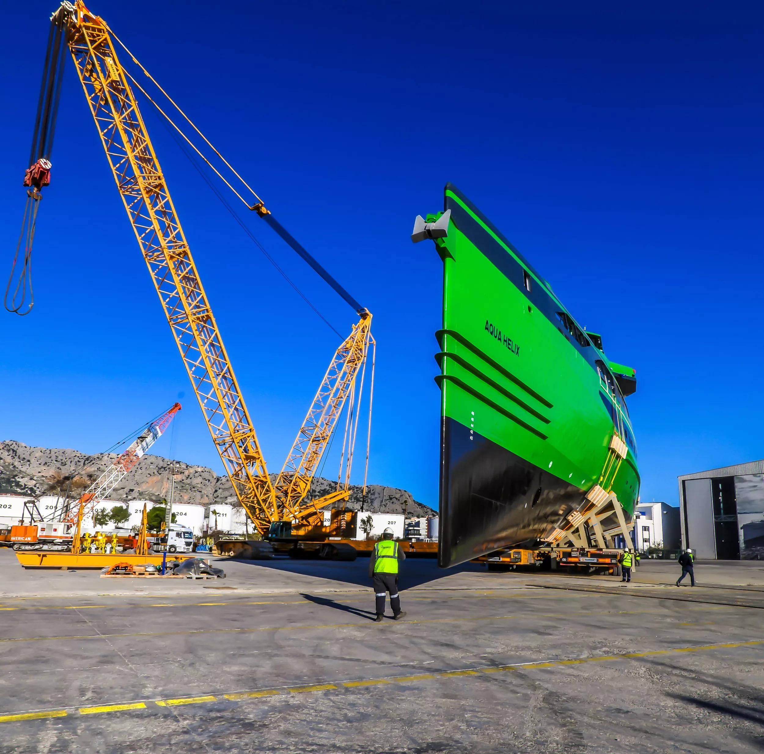 The vessel is the largest ever to have been launched in Antalya Free Zone. On top of that the launching was a very specific operation handled by two cranes which were transported by 50 trucks to settle on site since the current launching facility is under re-construction.