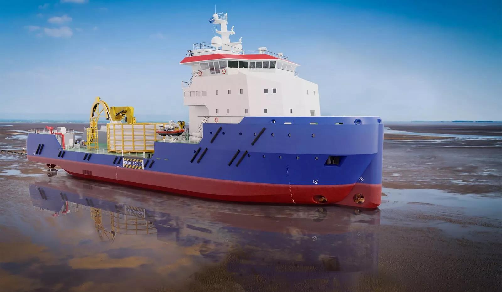 The hull is strengthened for beaching, which is ideal for nearshore cable pull-in operations