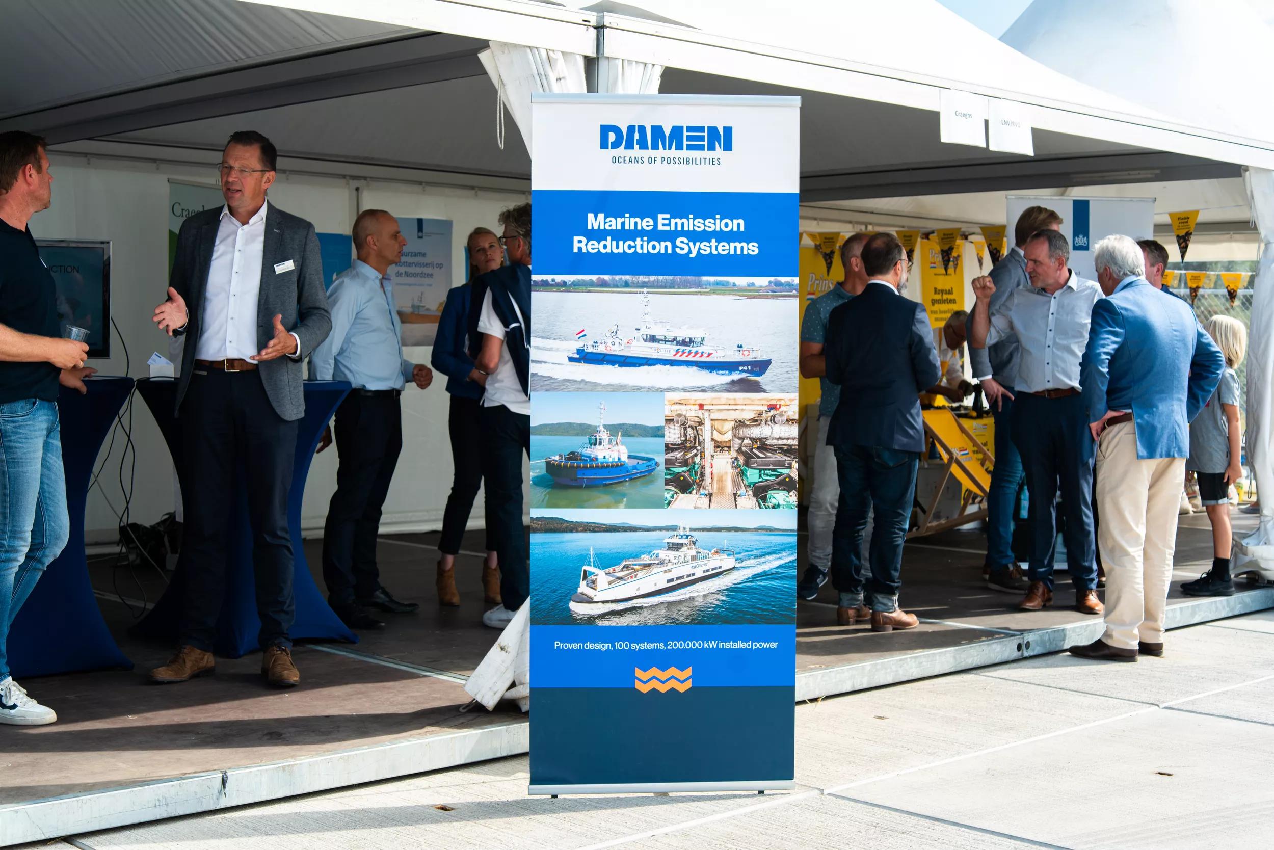 At the Damen Maaskant Fishery Festival on Saturday September 3rd, numerous possibilities were presented for entrepreneurs in fishing to improve their fleet in terms of emissions, fuel economy, energy efficiency and profitability. Booths from various divisions within the Damen Shipyards Group and suppliers show the possibilities for electric propulsion, alternative fuels or exhaust treatment as well as financing possibilities.