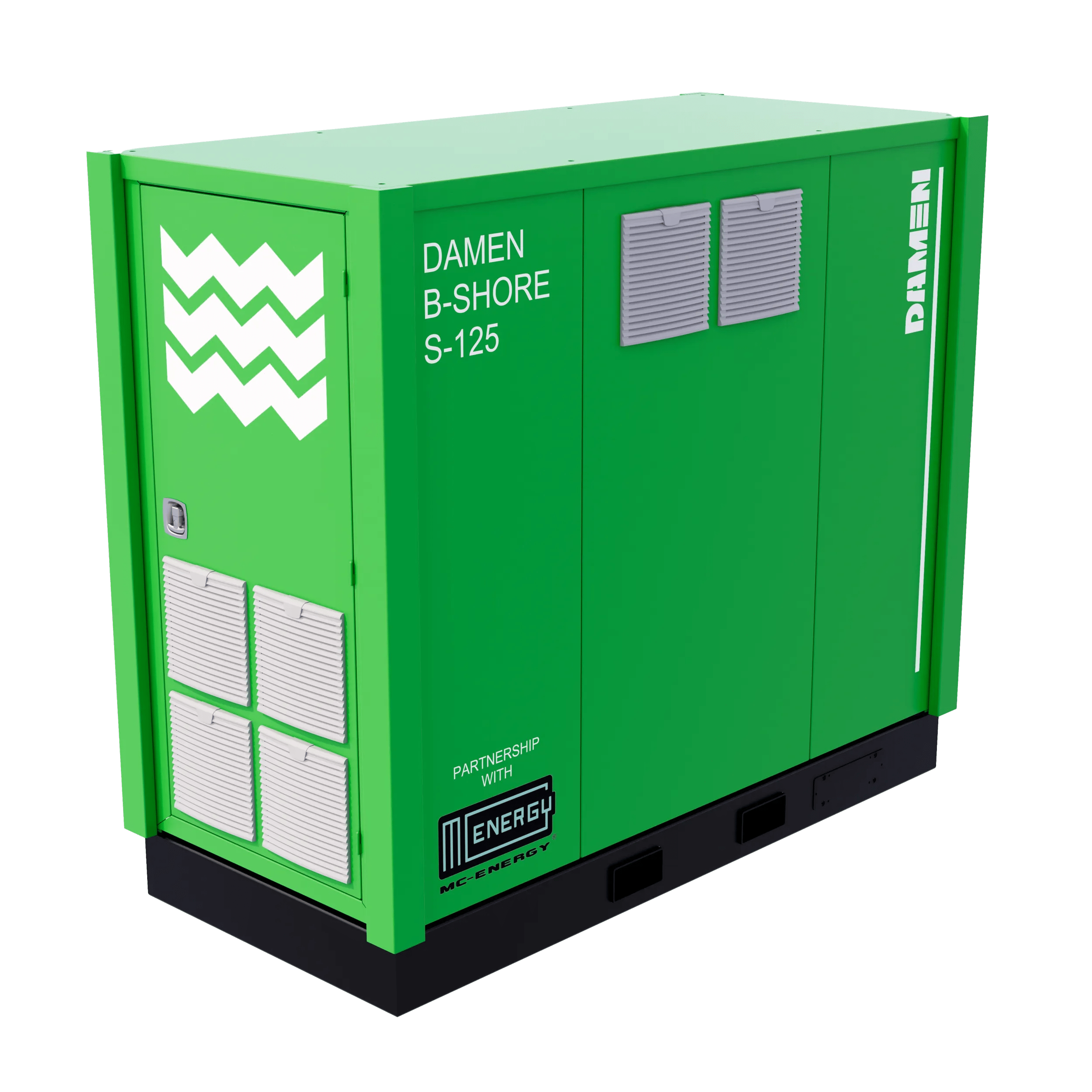 The exclusive partnership agreement between Mc Energy and Damen Services covers the construction, sales, delivery and after-sales of B-Shore units. ‘B-Shore is a new sustainable extension of the Damen Services products and service provision, which we can deliver to ship owners, shipyards and service providers across the globe thanks to our extensive network of Service Hubs.’ Rutger Blaauw, Managing Director of Damen Services explains.