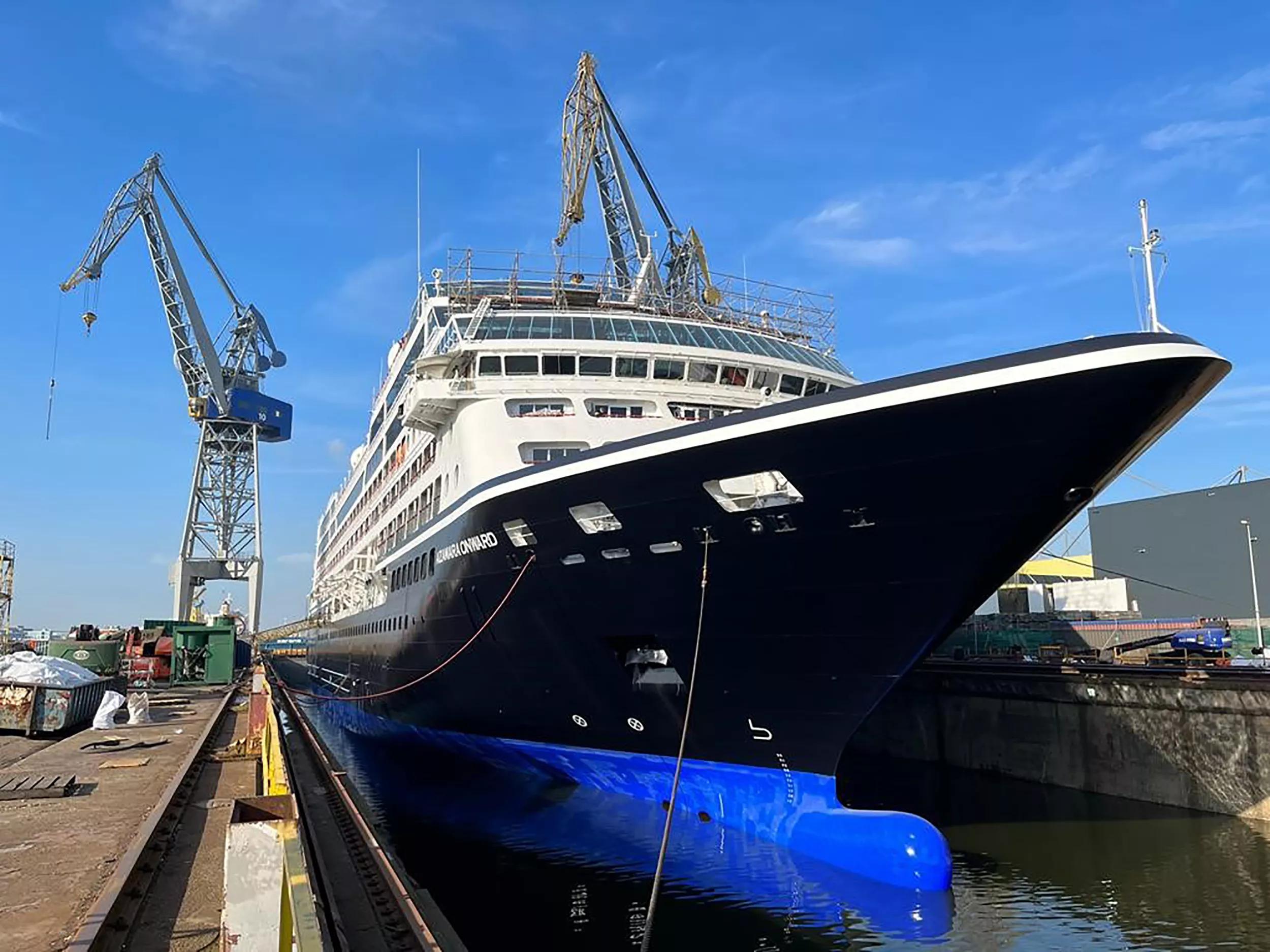 The 180 meter passenger vessel was berthed alongside at the Amsterdam yard from August 2021 to get an upgrade to the standards of cruise operator Azamara, refurbishing all cabins and suites and adding spa suites and terrace rooms. Passenger shared spaces like restaurants were upgraded and a new bar was created. As a relatively small vessel in today’s cruise market, this vessel aims to offer an intimate luxury cruise experience.