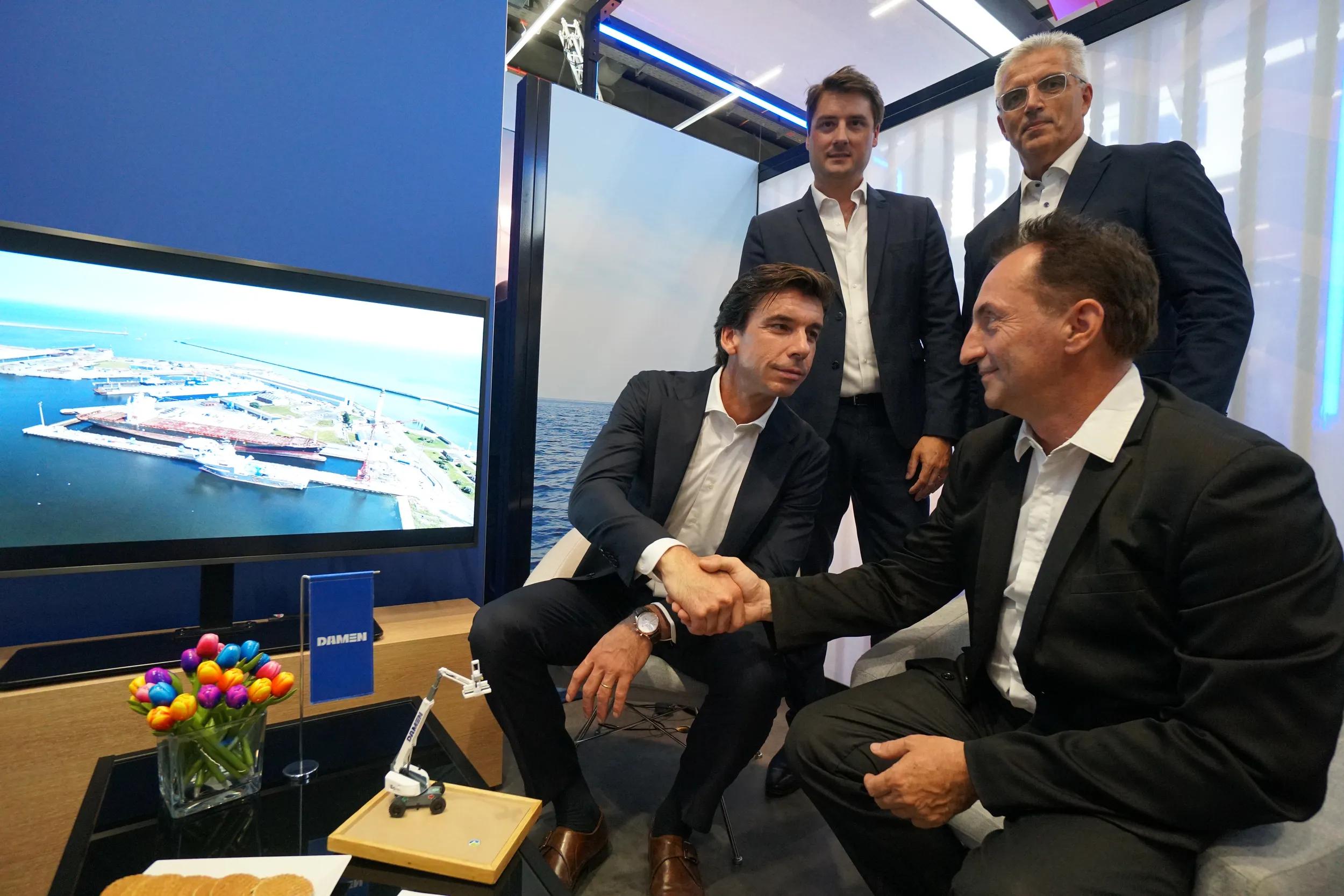 The signing ceremony took place at SMM on September 4 with Jeroen Heesters, Managing Director of the Damen Shiprepair Division, Fabien Guillemot, Managing Director of DSDu, Stephane Renouard, President and Founder of AMBPR SAS, and Claude Pelzer, VP Operations SERCEL Group Saint Gaudens.