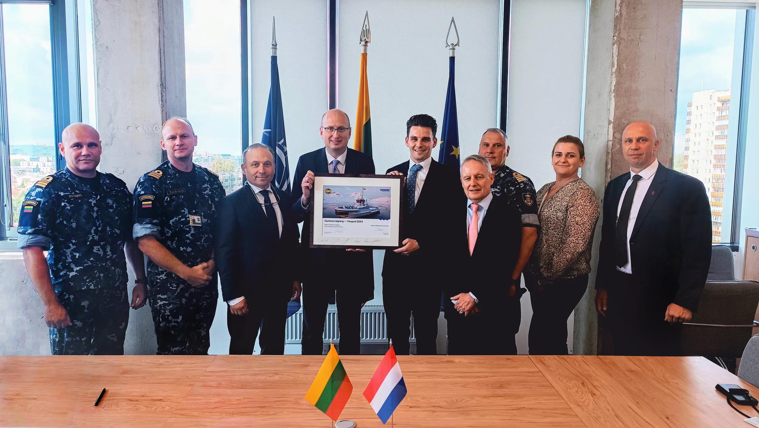 Damen Sales Manager Justin Rietveld said, “It is a great honour for us to sign the contract with the Lithuanian Defence Materiel Agency for the construction and delivery of a new ASD Tug for the Lithuanian Navy. Damen takes great pride in serving the needs of its naval partners around the world. The Damen ASD 3010 is a well proven design and very capable to serve the needs of Lithuanian Navy, both in terms of tug capabilities as well as performance in ice conditions. The large open working deck allows the vessel to carry out a wide range of activities, such as firefighting, towing targets, assisting in pollution control and other operations as specified in the technical requirements. We are confident that the ASD is a great fit with the operational need of Lithuanian armed forces. This project holds significant importance to us, and it will mark the commencement of a long and prosperous partnership together. We all look forward to a successful project and delivery of the vessel to the Lithuanian Navy in the first half of next year.”