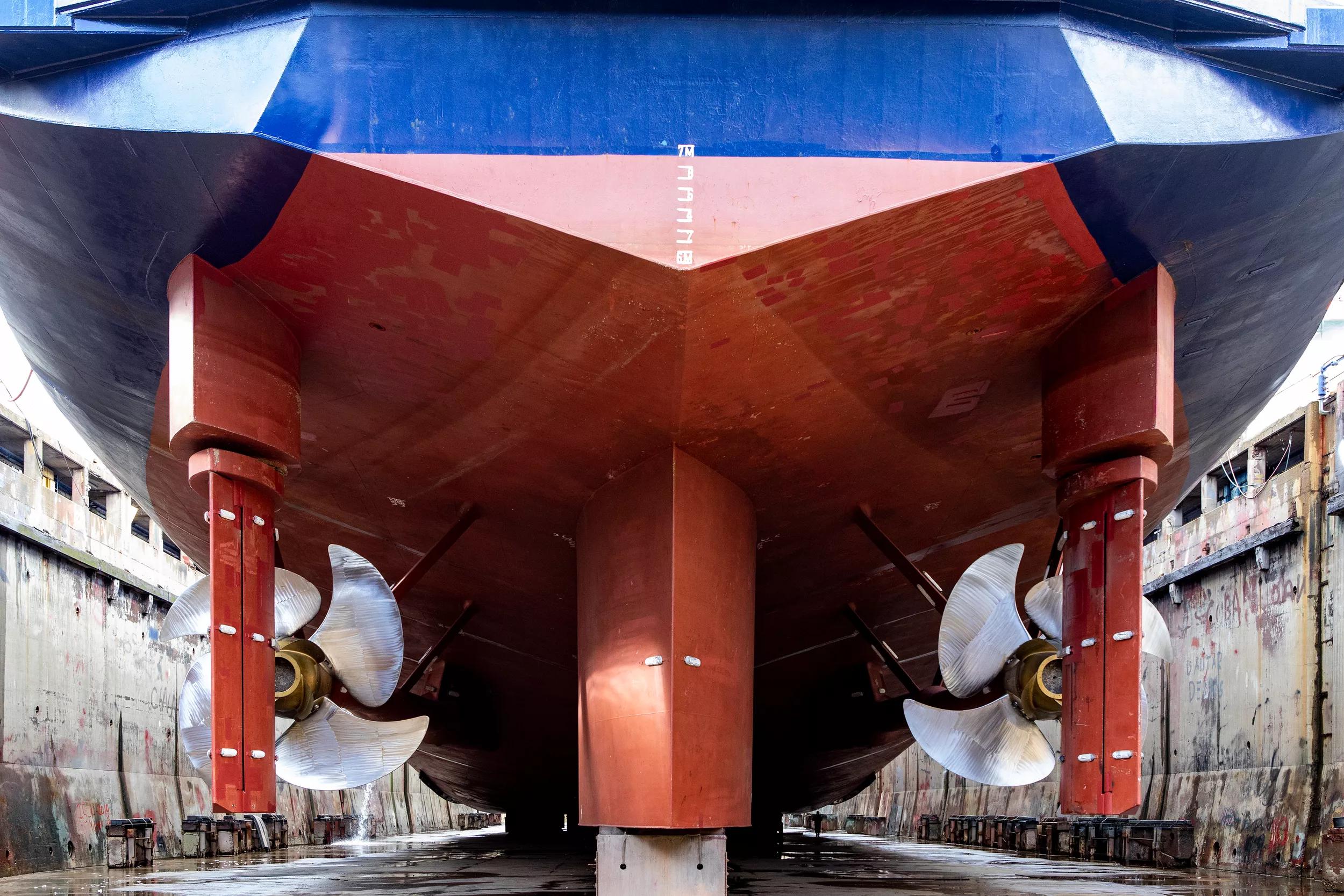 The most technically exacting part of the project was the fitting of the new stock to the rudder. This had to be done to the finest tolerances using techniques including bluefit to ensure optimal performance, and it had its risks. Any errors in the machining that affected the positioning and finish, and the stock would have to be discarded and refabricated, with a high cost in time and money. The fitting took place at DSR and to ensure that the process went perfectly, experienced service engineers from the sister companies teamed up under the guidance of DMC and used the old rudder stock for a trial fit. This determined the exact values that the replacement stock would need to meet in order to fit the rudder blade perfectly. Tests took place during the machining in order to ensure that the process continued on track.
