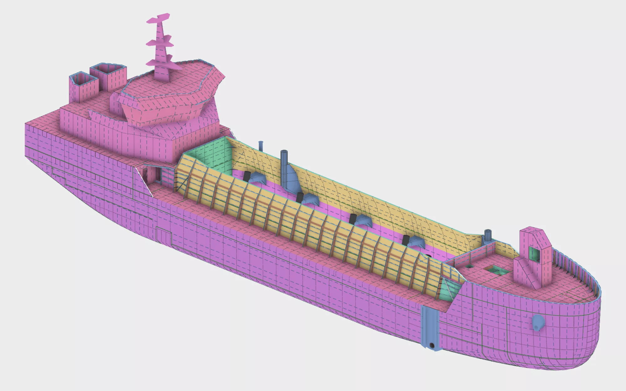 Vessel steel hull Design evaluation based on 3D models in parallel to its classification review process has become possible thanks to the new data exchange format - OCX. The OCX is an open standard that facilitates data exchange of 3D ship models for class approval. This Open Class 3D Exchange standard has been developed by a consortium of software companies including NAPA and Aveva, together with classification societies including DNV, Bureau Veritas and Lloyds Register. In close collaboration with Finnish software developer NAPA and Bureau Veritas, Damen has presented the three dimensional design of their TSHD 2500 (Trailing Suction Hopper Dredger with 2500 m³ hopper capacity). All the mission equipment as specified for a client had been integrated into this design. Bureau Veritas assessed the steel hull structure to be strong enough and safe to SOLAS standards, with all of the heavy equipment operational.