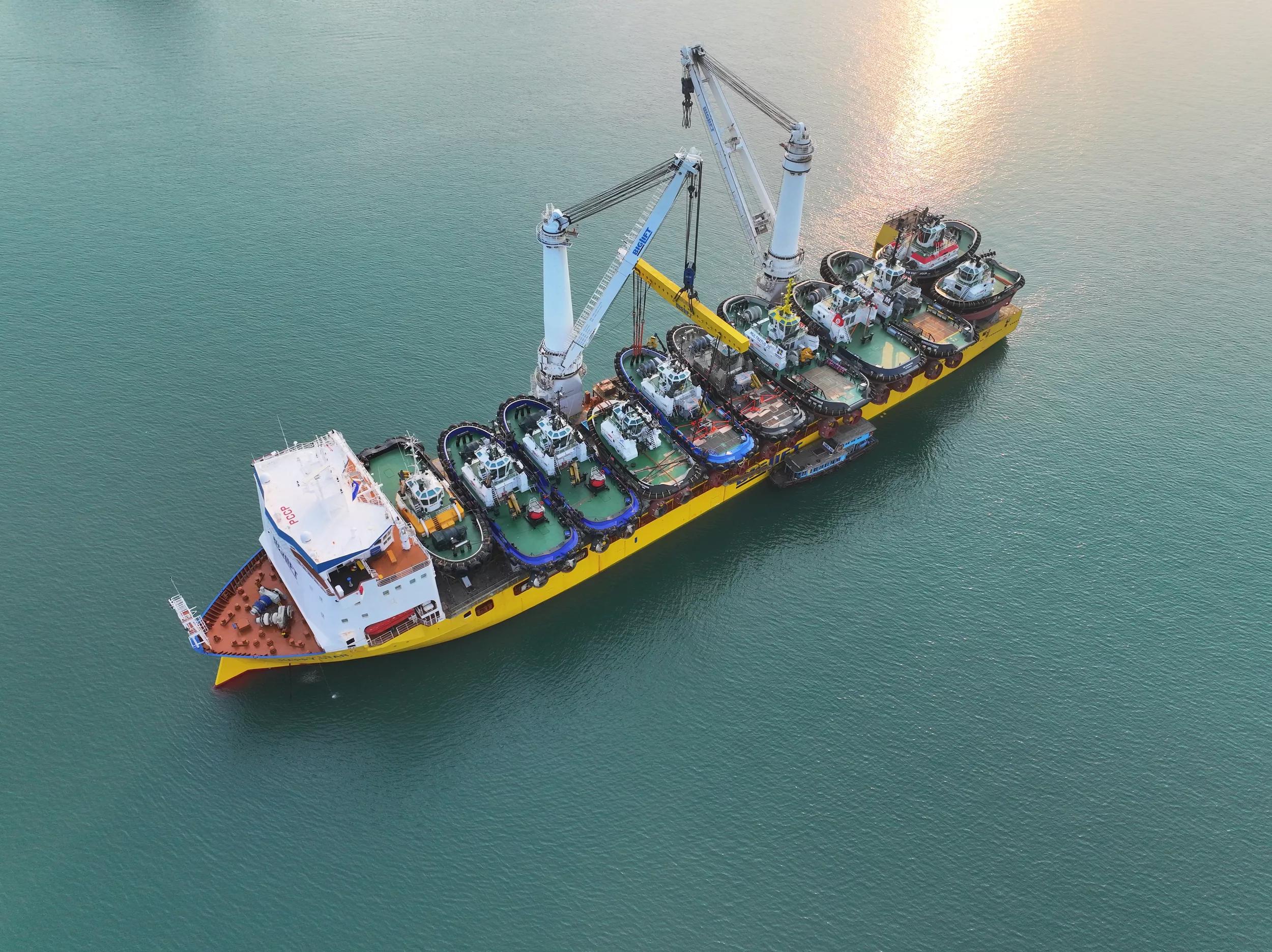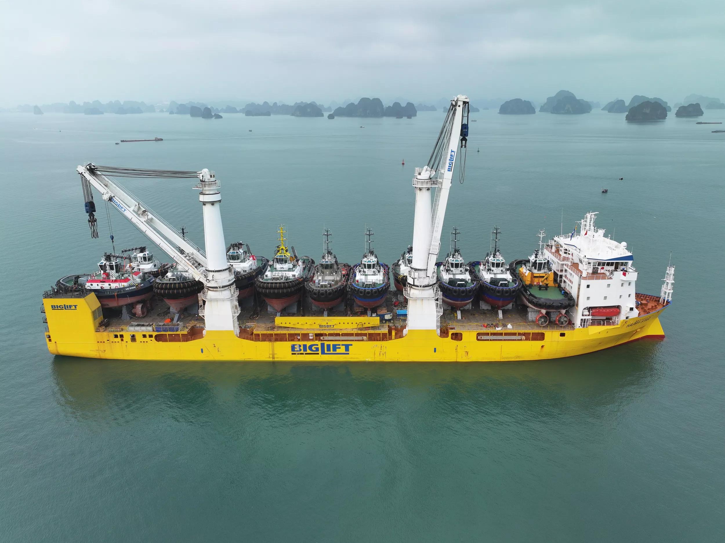 Damen Shipyards and leading heavy lift specialist BigLift Shipping have completed a major logistical feat. A single vessel has transported eleven Damen tugs from the shipbuilder’s yards in Vietnam and China to Europe.