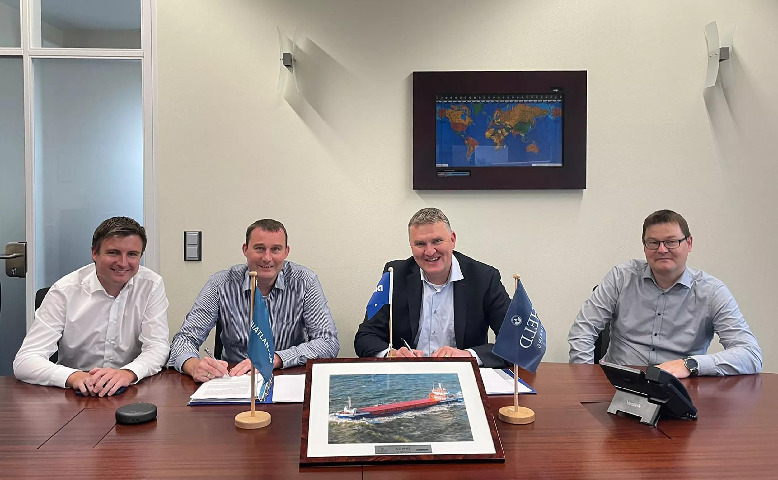 From left to right: Andreas Bergmann, CEO & partner Uniatlantico; Bernhard Held, director Held Shipping; Remko Bouma, commercial director Damen Cargo vessels; Jan Held, technical director Held Shipping