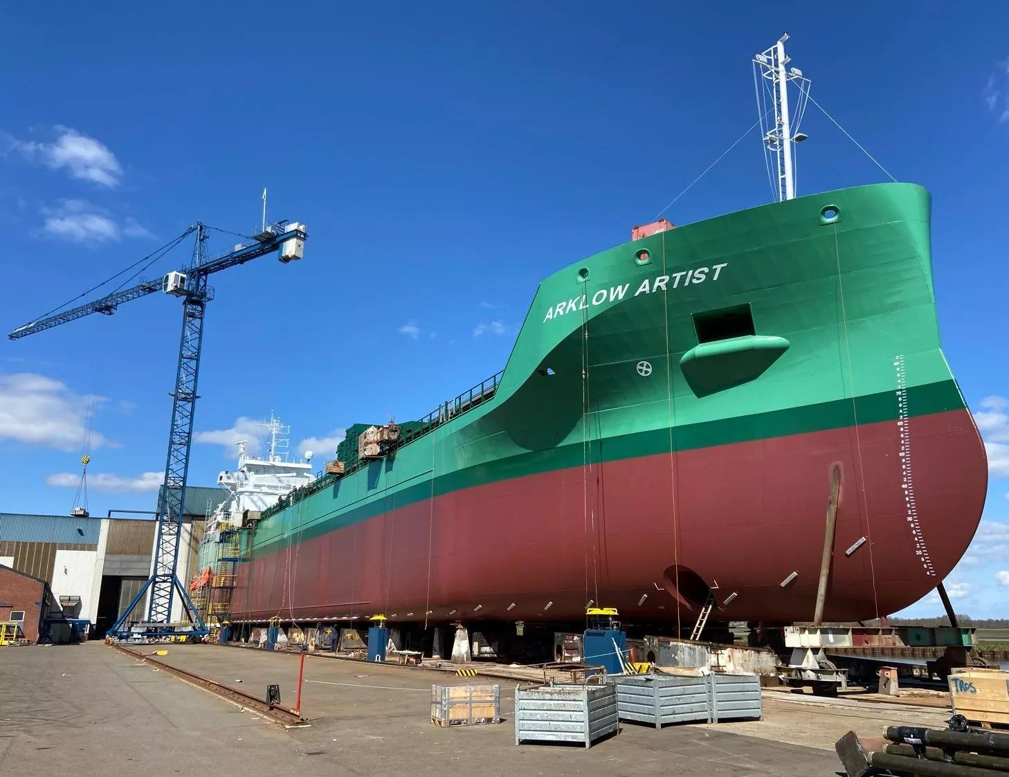 The Arklow Artist is currently being outfitted at the Ferus Smit shipyard in Westerbroek, the Netherlands. This vessel is part of Arklow Shipping’s 8,500DWT series. The first five ships in this series, Arklow Abbey, Accord, Ace, Archer and Arrow, are now in service. This also applies to the 16,500DWT series, which consists of four ships: the Arklow Wave, Wind, Willow and Wood.