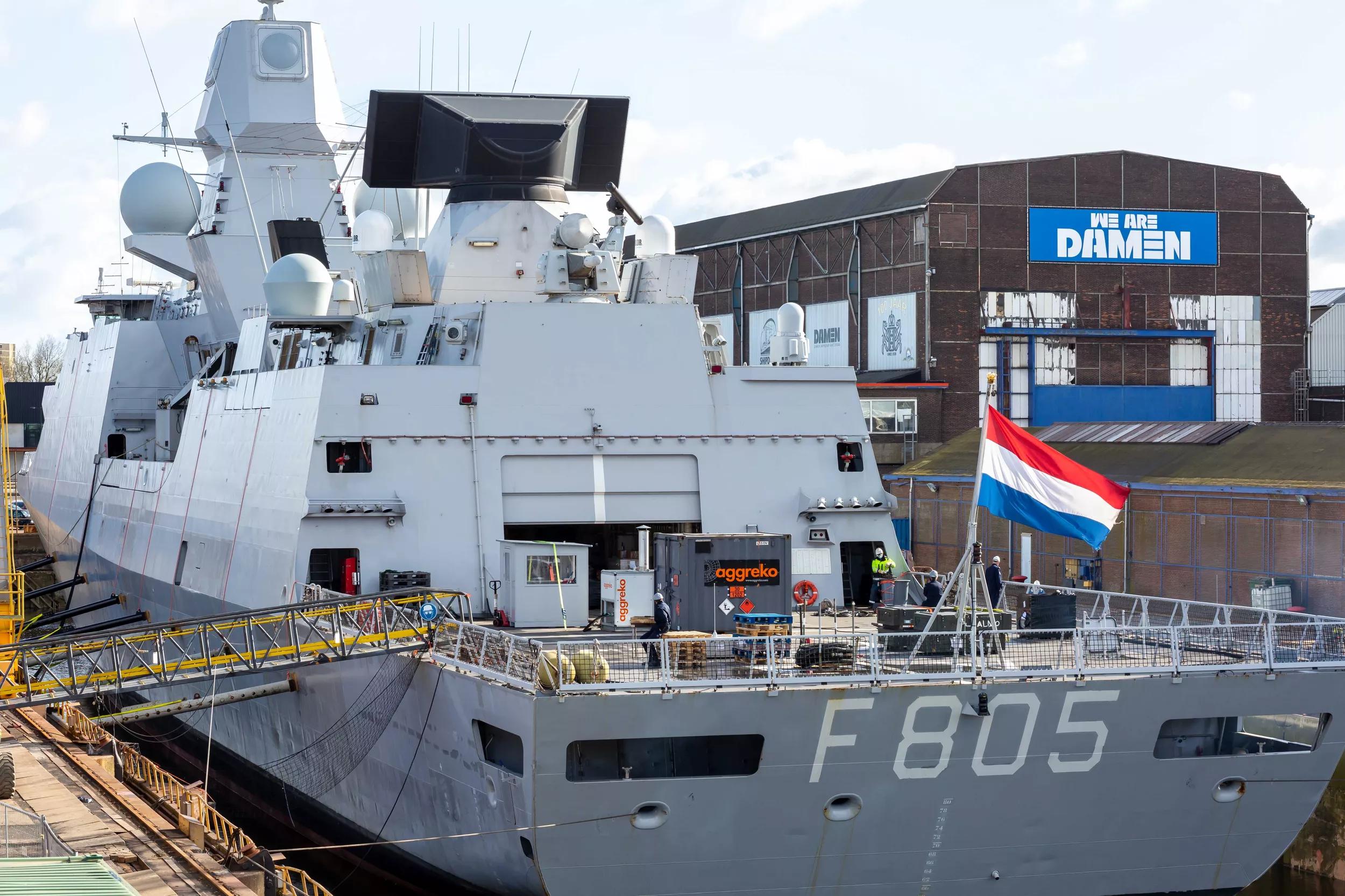 After a six-week period of maintenance, Damen Shiprepair Amsterdam has this week handed the HNLMS Evertsen back to the Royal Netherlands Navy. The shipyard worked hard – together with its Dutch suppliers – to prepare the Air Defence and Command frigate for deployment on, among other things, the voyage of nearly 40,000 kilometres that she will soon be making to Japan together with the UK Carrier Strike Group.