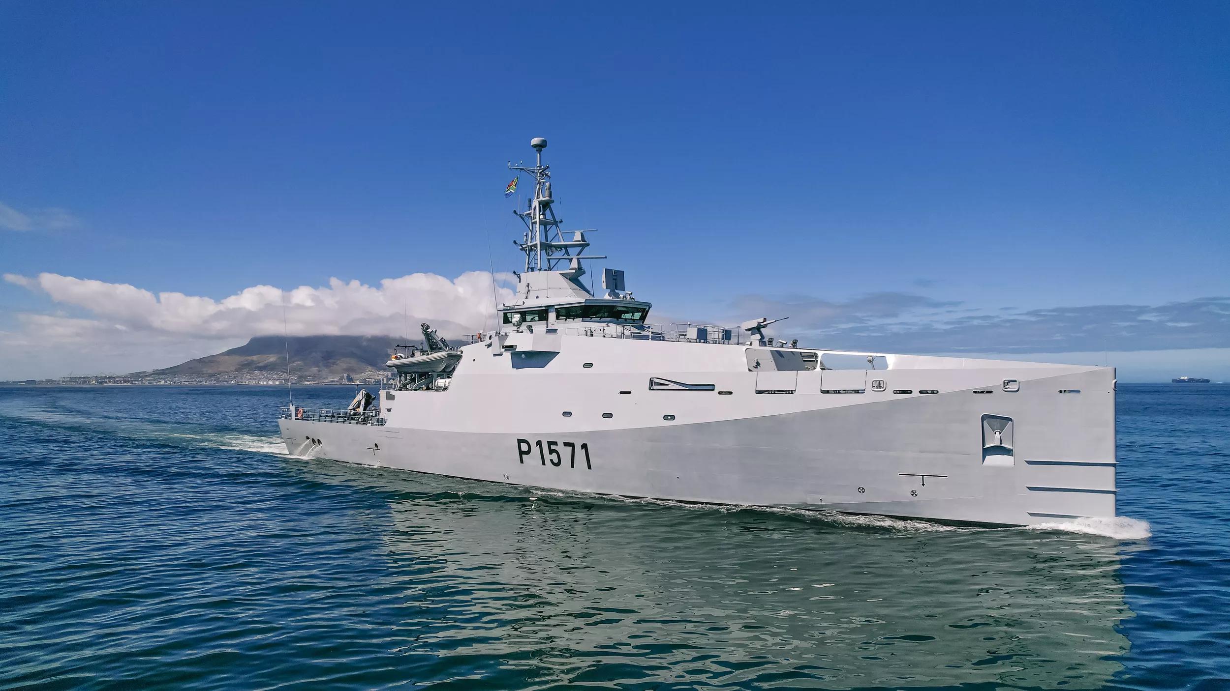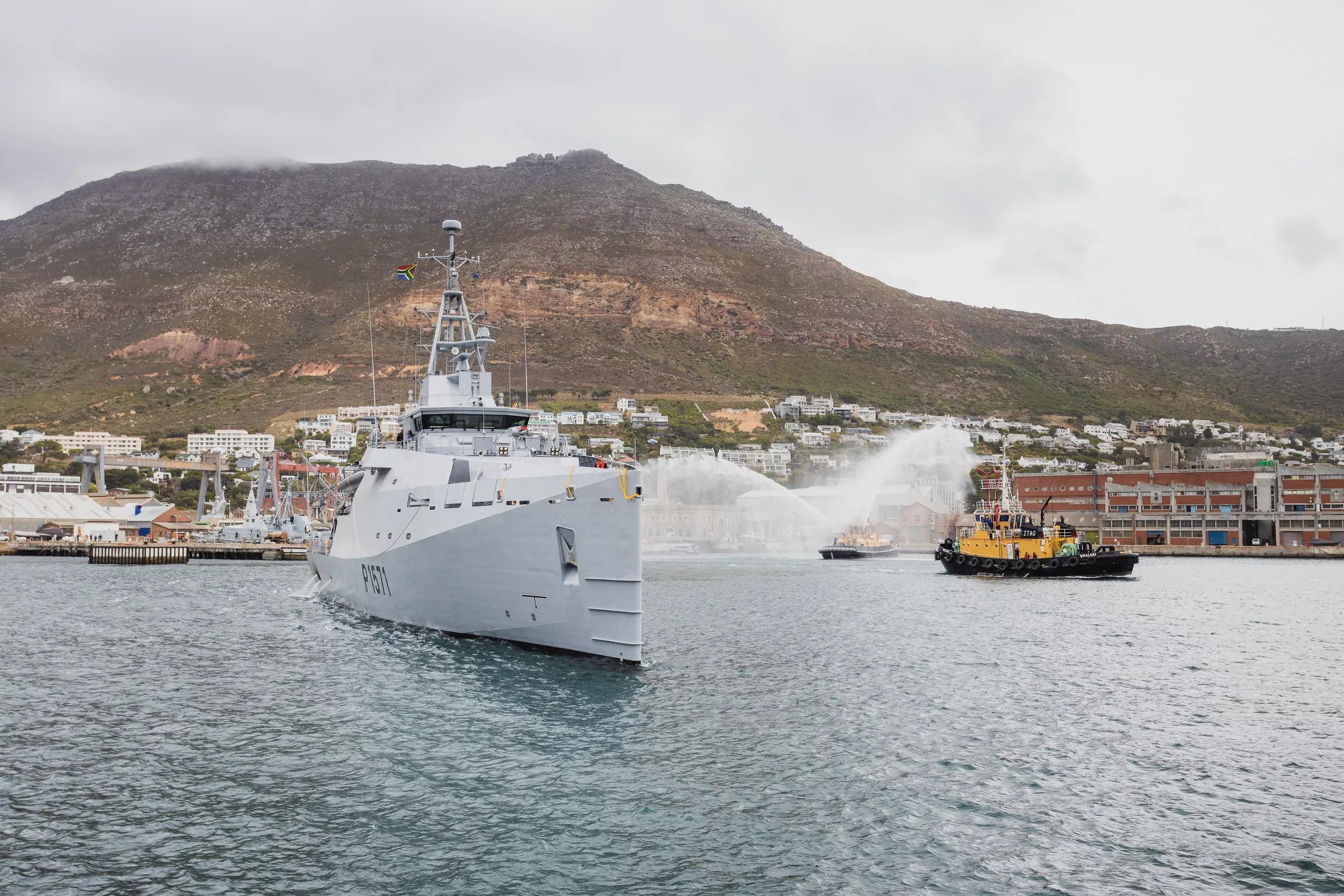 Mr Sam Montsi, Chairman of the Damen Shipyards Cape Town Board, commented: “The delivery is a significant milestone in the story of Damen Shipyards Cape Town. It is the first time that a naval vessel of this calibre has been built at the yard and it is also the first of its class! Despite the COVID 19 pandemic, this beautiful vessel has been built to the required quality level which is an achievement that was realised by South African people, as most of the work and materials that went into the construction were sourced locally.”