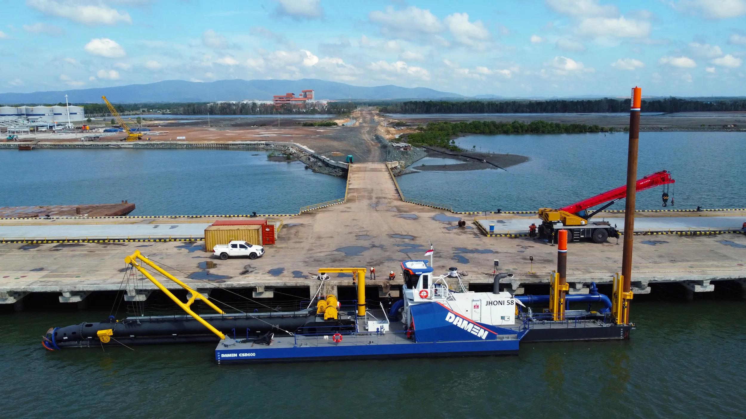 The CSD600 is working on a maintenance dredging project at the Port of Batulicin on the island of Kalimantan