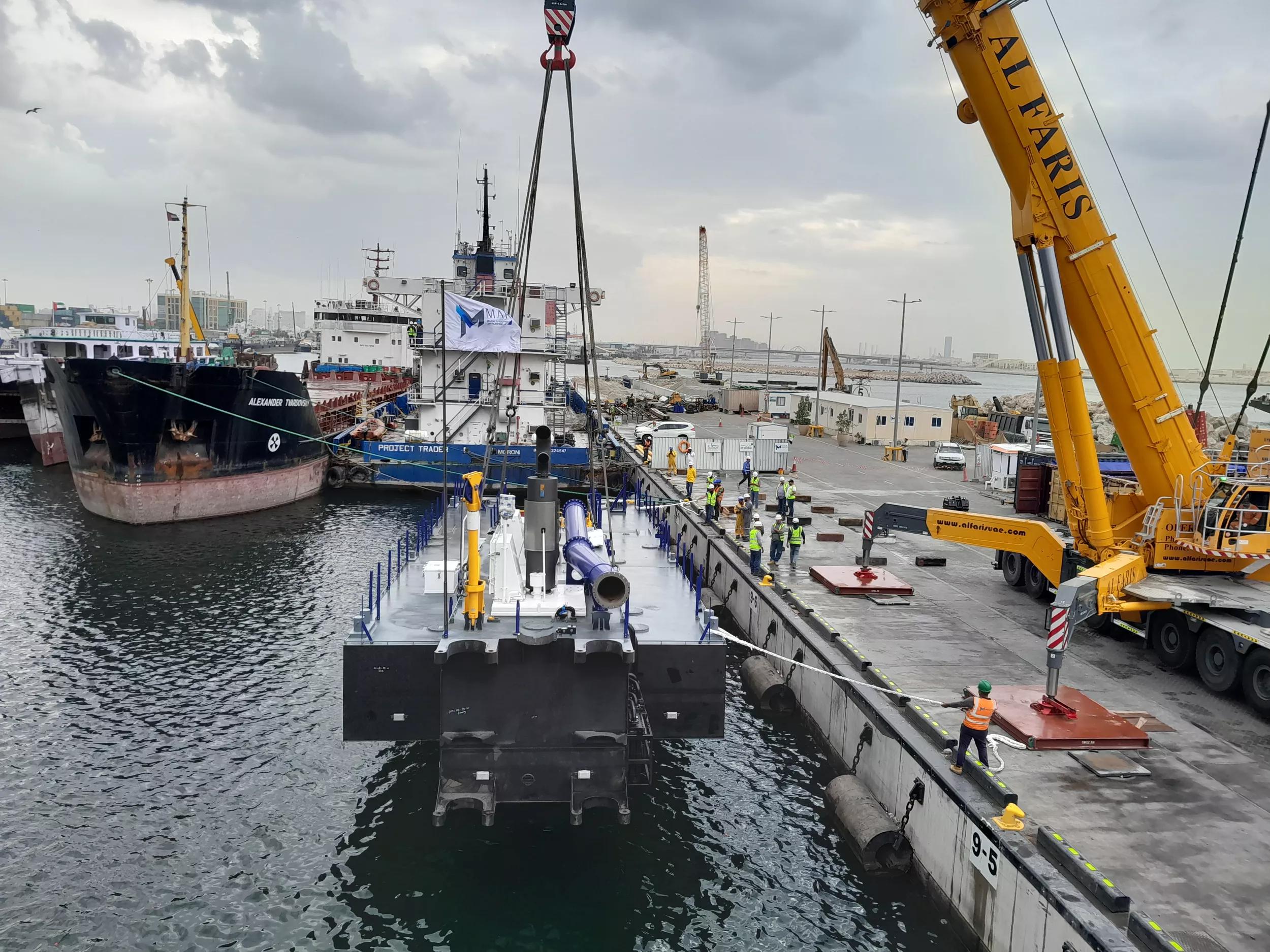 The CSD500 has been named MAR 22. Upon its delivery in Dubai, Damen’s client, a leading contractor in the region, played a vital role in the reassembly of the modular dredger. “We are happy to welcome the MAR 22 to our marine equipment fleet,” Mr Paul Abou Rjaili, Operations Manager at MAR Marine states: “We are further reinforcing our dredging equipment and capabilities, and this customised dredge exactly matches our requirements for the upcoming Al Hamriyah Port Expansion project.”