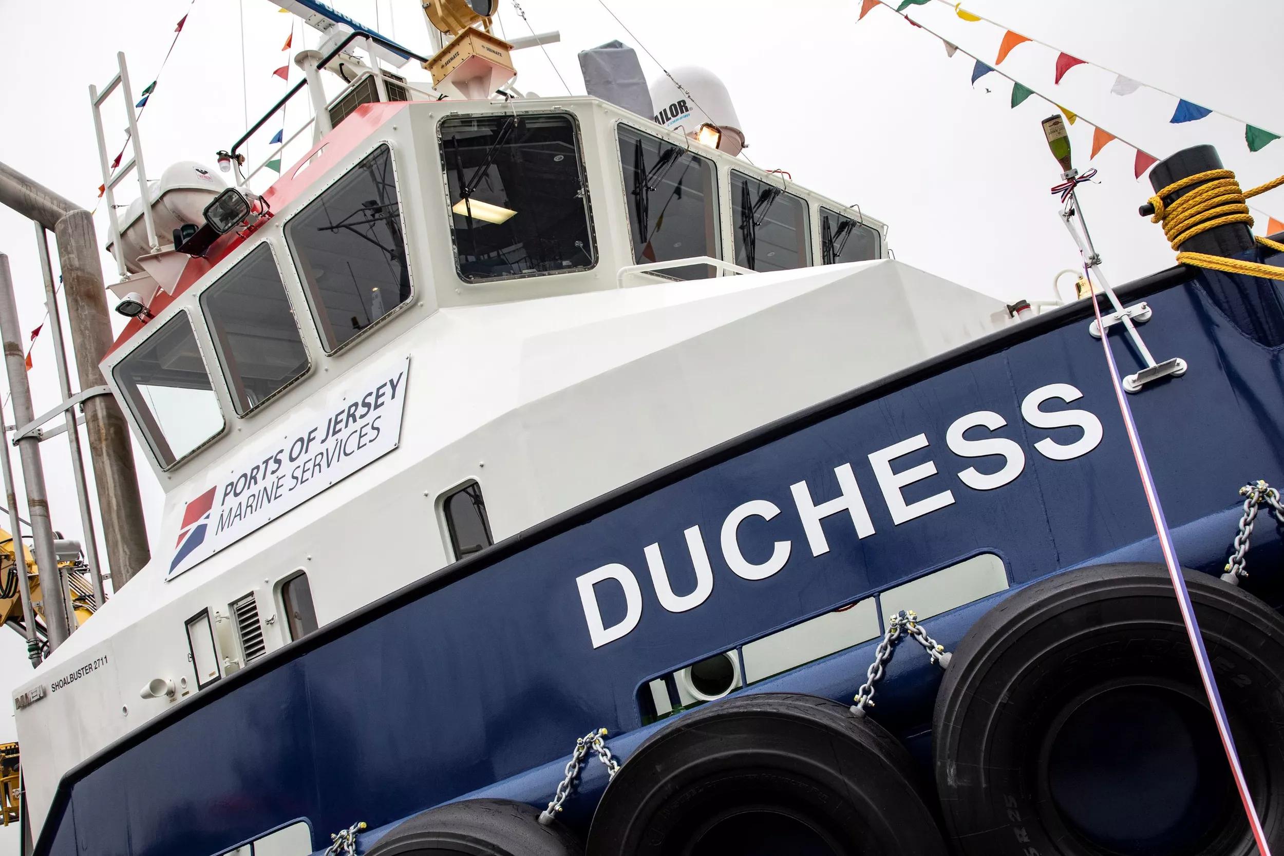 At the christening ceremony the Duchess was officially named by Ports of Jersey employee Fiona Planterose, after which she headed for Le Havre for her first assignment, a towing job.