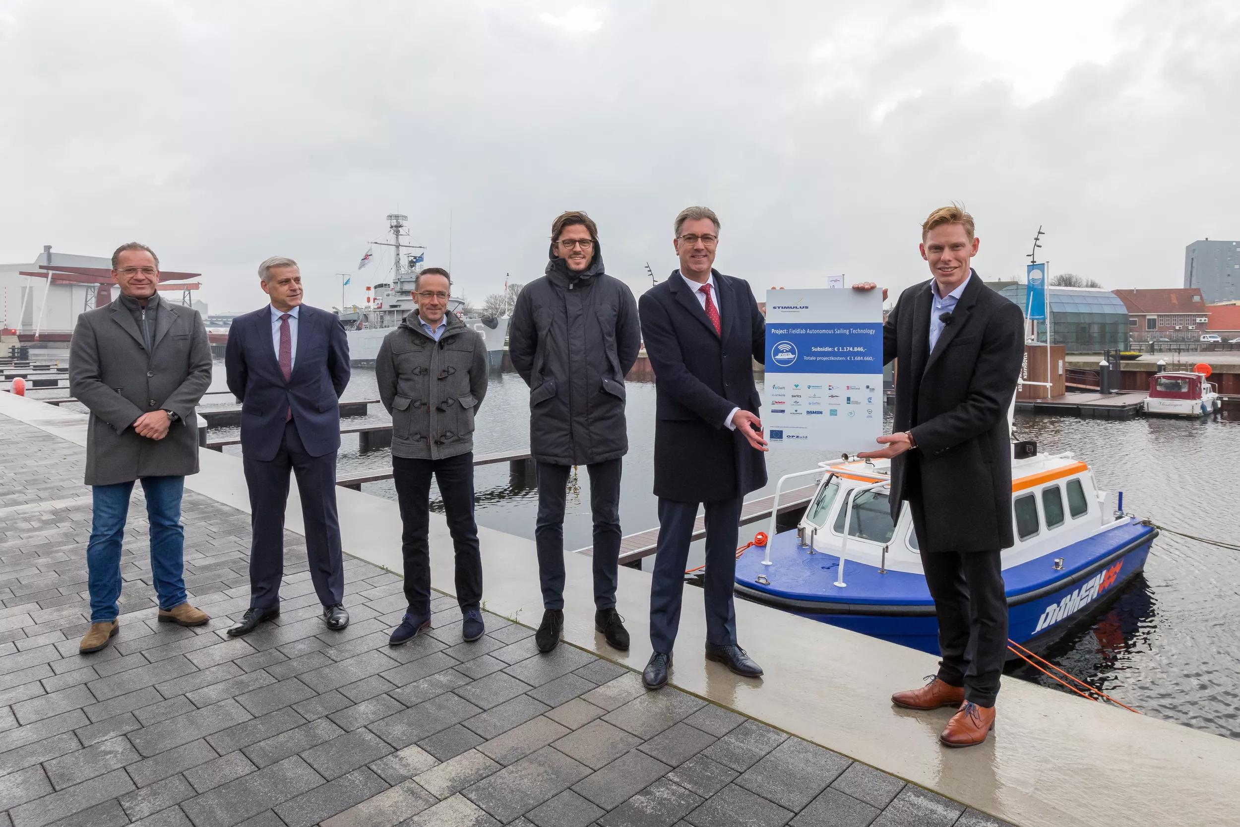 Joost van Damme (Onilio), Richard Keulen (Damen Naval), Micha Beckers (Hogeschool Zeeland), Vincent Wegener (Captain AI), Harry van der Maas (Executive member of the Province of Zeeland), Jochem Nonhebel (Damen Naval)