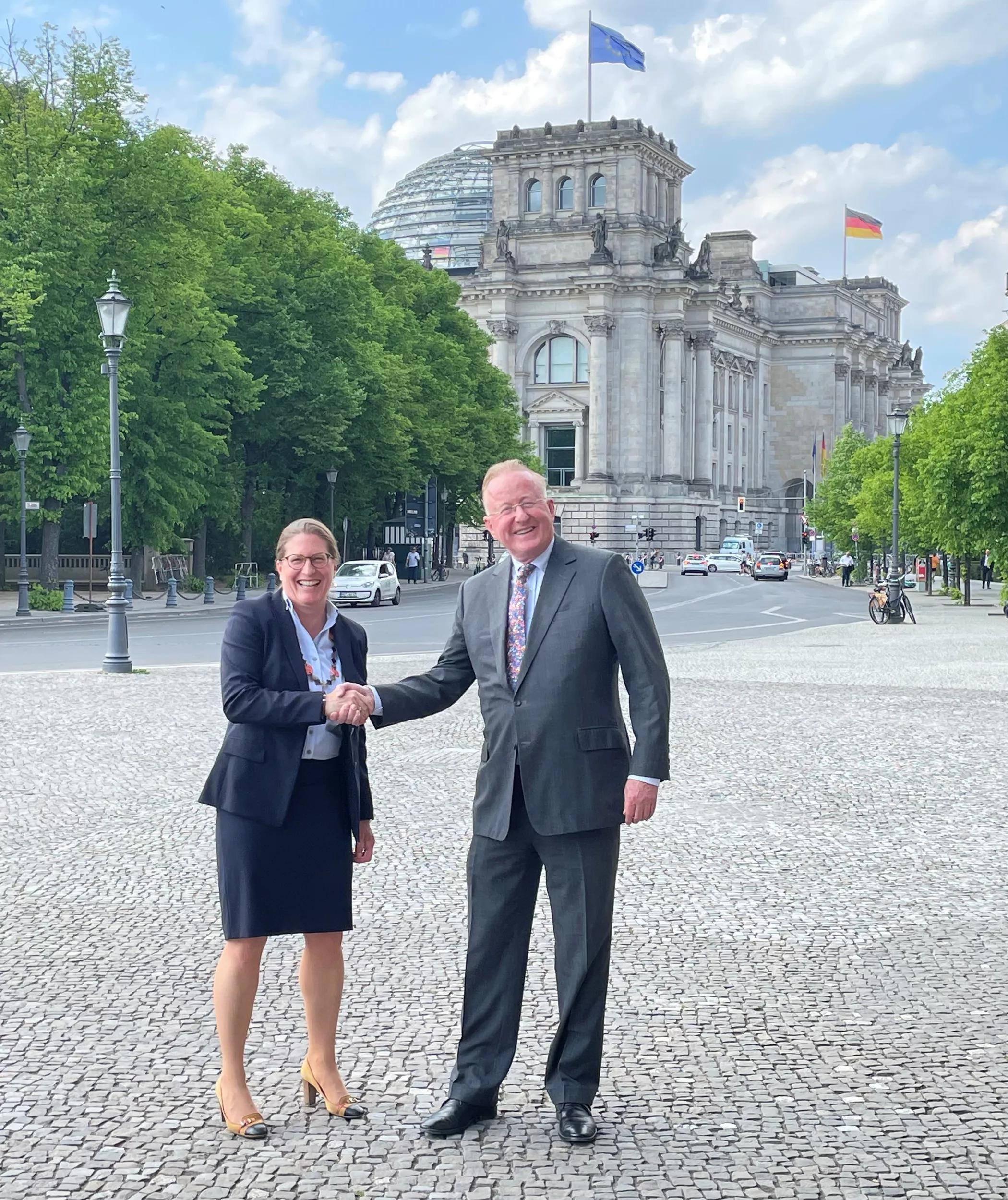 On the top photo from left to right: RENK CEO Susanne Wiegand and Damen Naval Managing Director Hein van Ameijden mark the signing of the contract between the two companies with a handshake