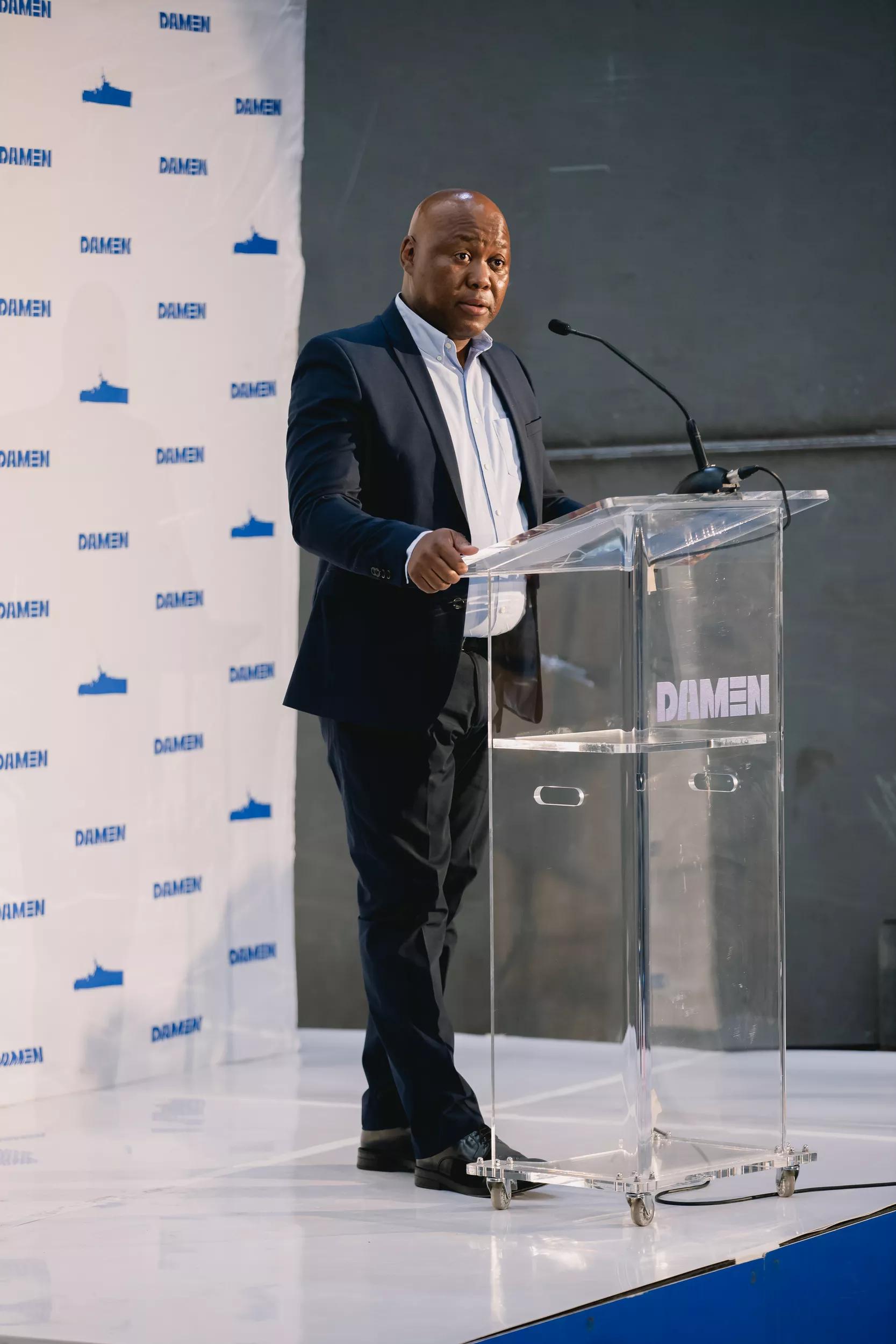 Speaking at the event, CEO of ARMSCOR, Adv. Solomzi Mbada, stated that “the acquisition strategy for this project included Commercial-Off–The-Shelf (COTS) equipment, as well as compliance with the dti 60% local content shipbuilding designation requirement, Defence Industrial Participation (DIP) and National Industrial Participation (NIP). This ensured that ARMSCOR could maximise local participation and ensure that the vessels can be supported locally, thereby minimising the life cycle support costs. The strategy further acted as an impetus for the shipyard to improve its local infrastructure and investment in human resources, creating jobs that are much needed to boost the South African economy and help reduce the high unemployment rate.