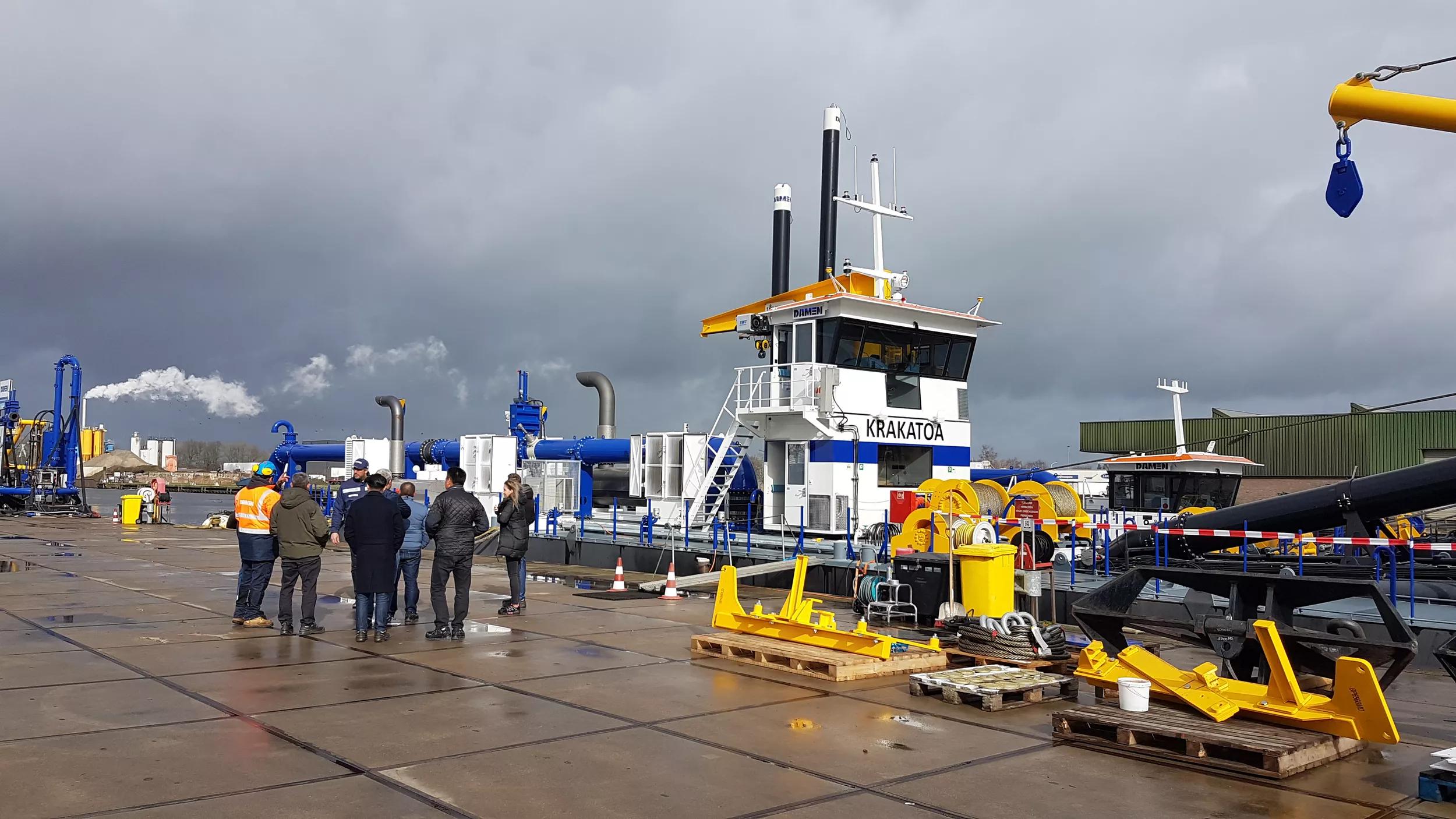 At the Damen Dredging yard in Nijkerk, the Netherlands, the Cutter Suction Dredger (CSD) 650 Krakatoa has been inspected by her owner before shipment. The client has accepted the stationary dredger, which will now be shipped to Indonesia, where it will operate on the island of Kalimantan. Damen’s customer ordered the CSD last November. The speed of the delivery is the result of Damen building its vessels on speculation and keeping them in stock, ready for order along with options available for smart customisation.