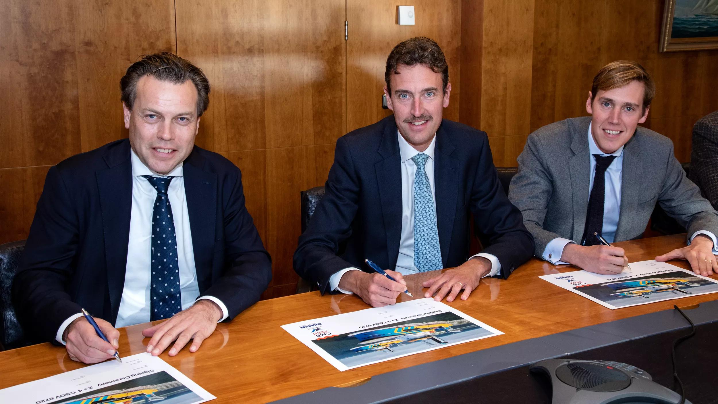 From left to right: Arnout Damen (CEO Damen Shipyards), Alexander Saverys (CEO CMB) and Ludovic Saverys (CFO CMB)